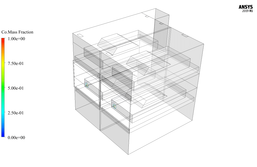 In this simulation, the Species Transport Model has been used to model the release of carbon monoxide into the ambient air. So the number of gaseous species equals two, including air and carbon monoxide (CO).