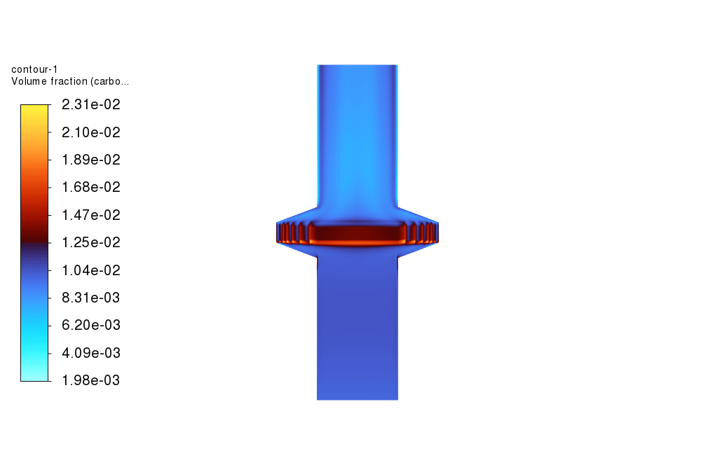 The Eulerian multiphase model was used in this project to simulate the filtration of carbonate from water and cake filter layer formation. Carbon material was used to act as the filter, reducing the concentration of the carbonate material. Granular along with packed bed sub-model was activated to model the filtration and cake filter layer formation. The phase property model was used to obtain the granular temperature.