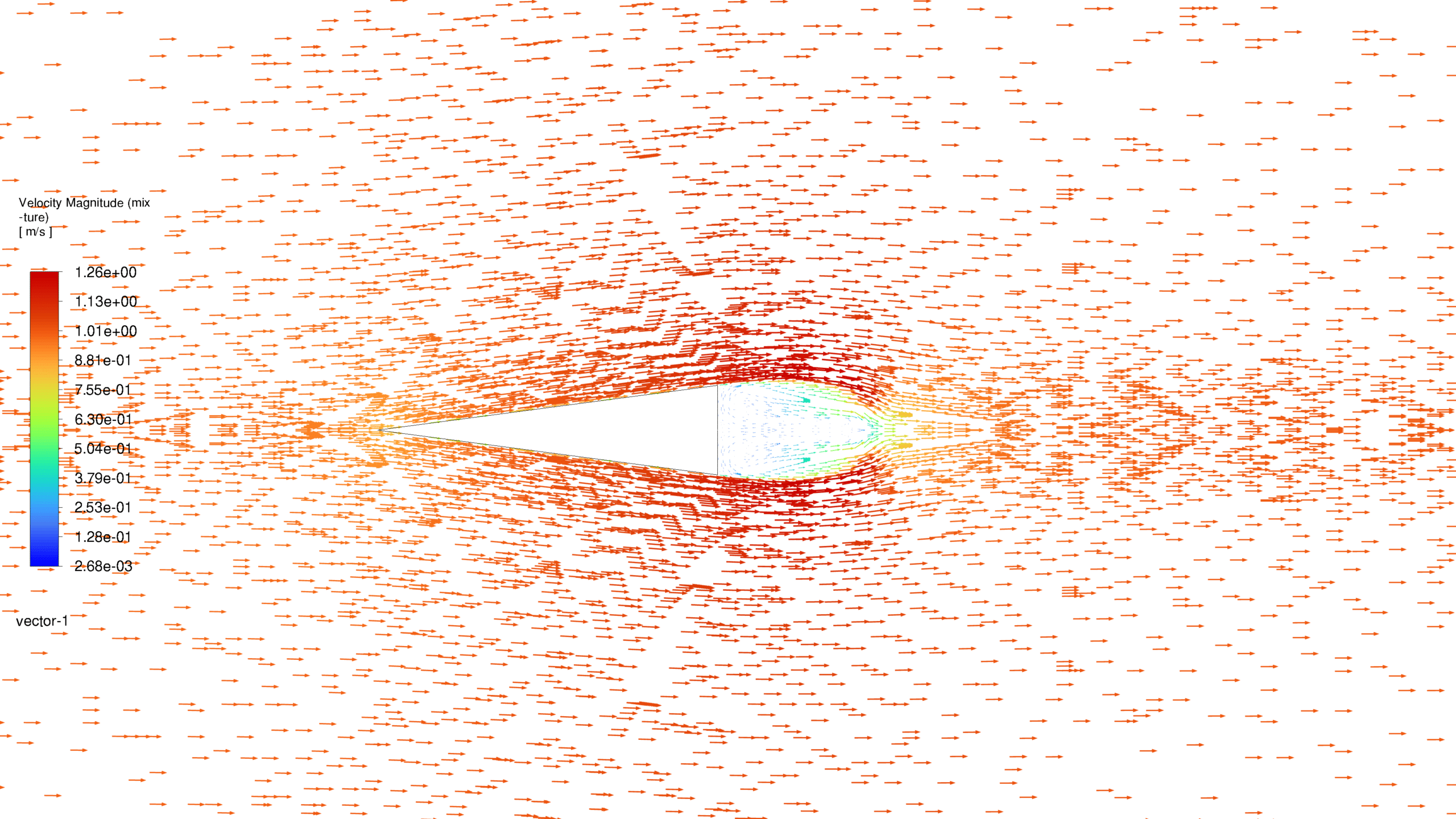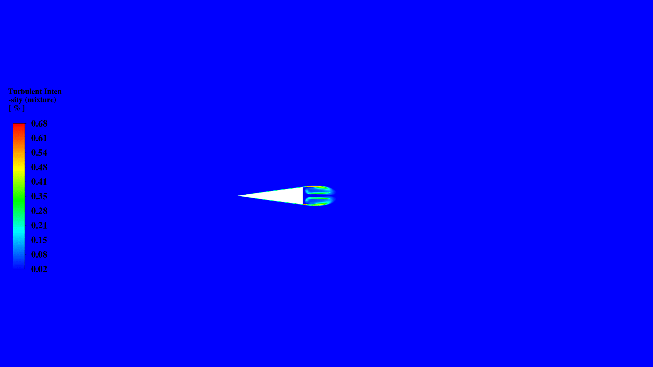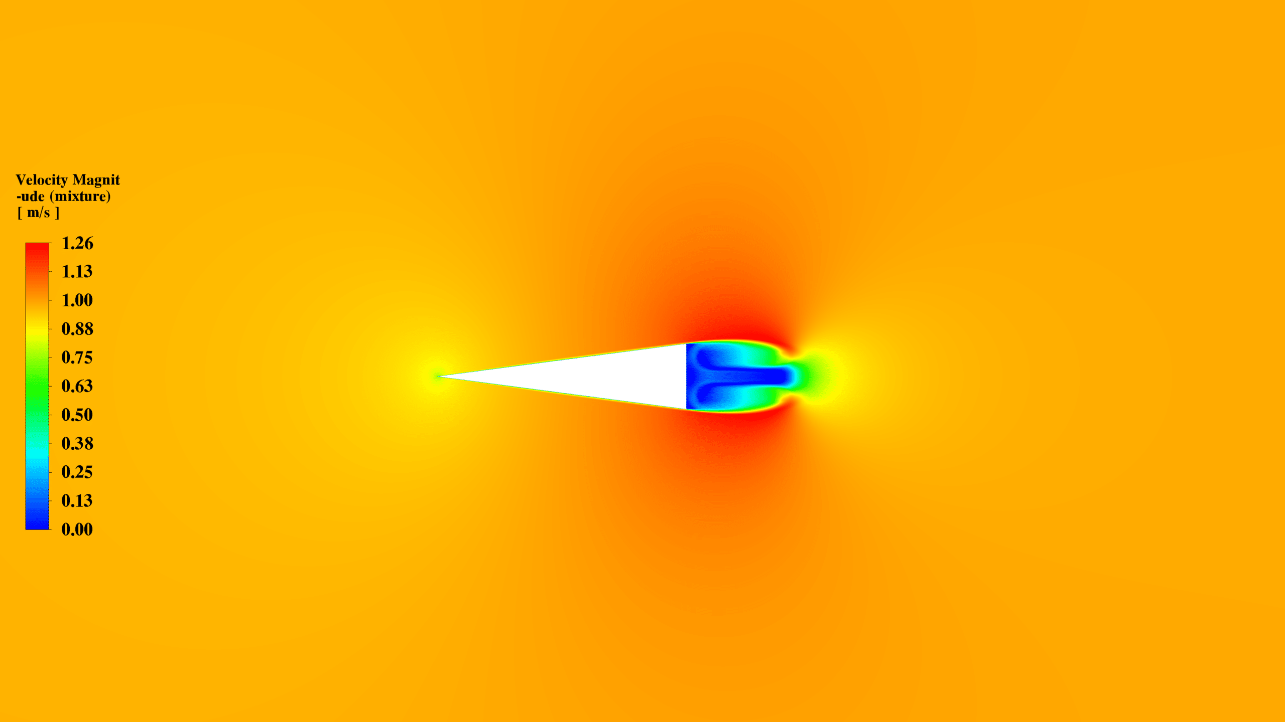 In conclusion, the CFD simulation successfully captured the cavitation phenomenon in water flow around a triangular obstacle. The results demonstrate the formation of a low-pressure region behind the triangle, leading to the vaporization of water and the creation of a two-phase flow. The study highlights the complex interplay between pressure distribution, velocity fields, and turbulence in driving the cavitation process.