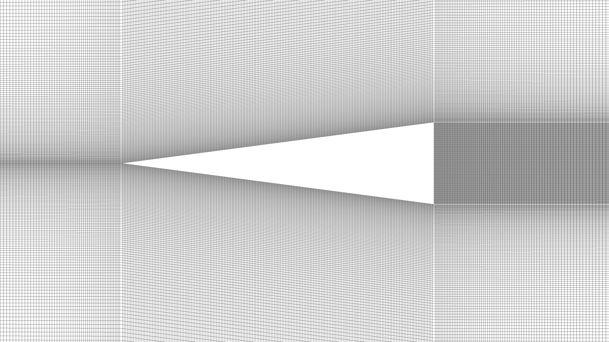 The mesh visualization demonstrates a well-structured grid, with refinement near the triangle to capture the complex flow features accurately.