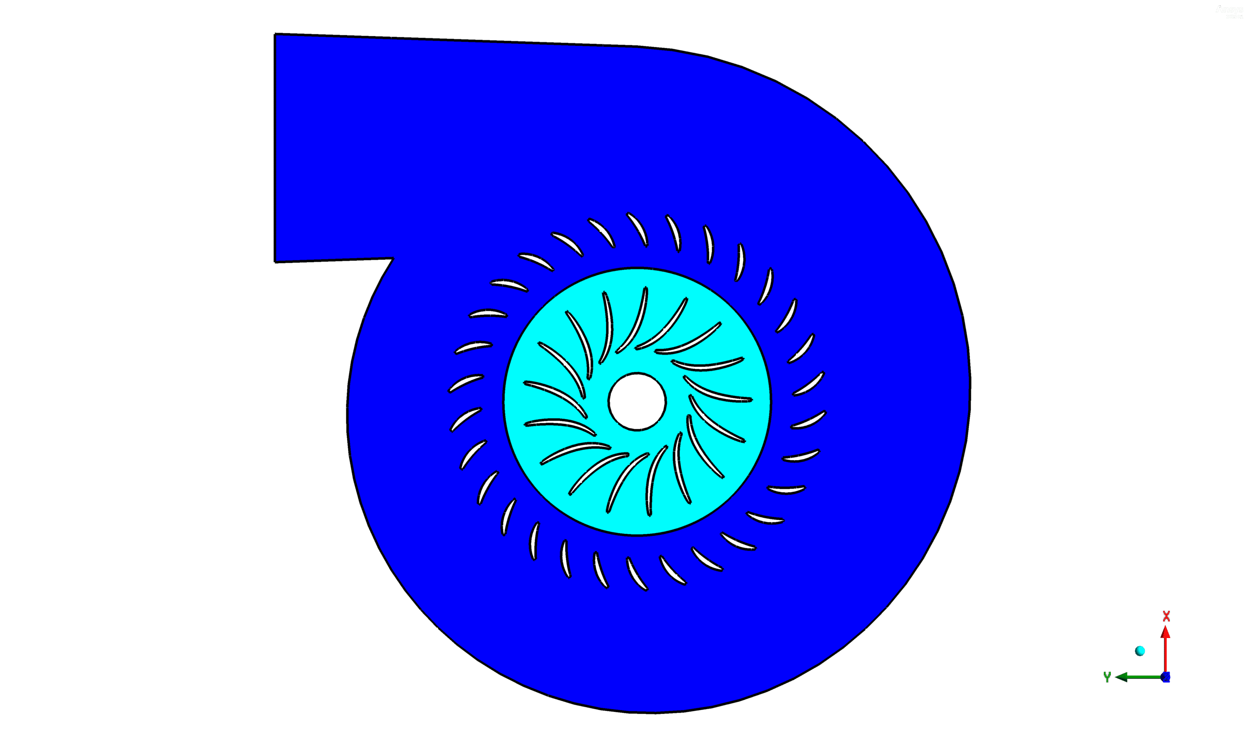 - The centrifugal pump was modeled in ANSYS with two zones: the stationary casing and the rotating impeller.