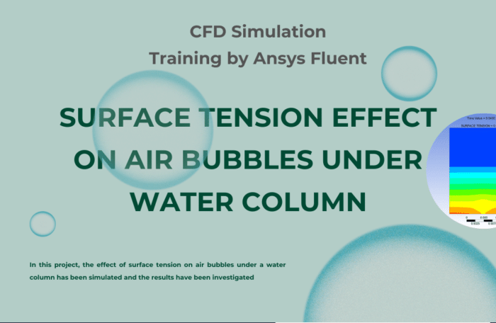In the 6th practical exercise, numerical simulations of air bubbles under a water column with two different surface tension have been done using Ansys Fluent software. The VOF model has been used to simulate and solve the two-phase flow field equations. The two modes in this project are simulated and compared.