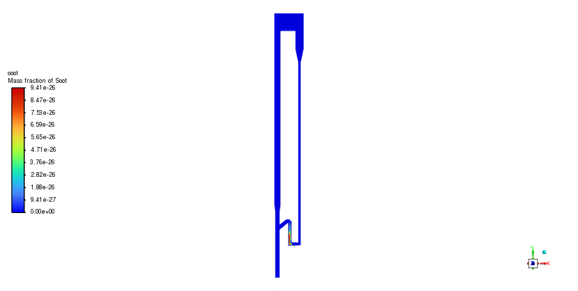 The simulation begins with the injection of Bituminous coal from inlet 2 (fuel feed port). As stated in the confirmation file, the particle`s diameter varies between 0.355 and 0.4mm. It should be noted that the coal is modeled using Discrete phase model (DPM) and after devolatilization, it turns to species. Furthermore, due to the transient nature of the problem, Although the continuous phase was solved in steady-state time mode, the discrete phase was calculated and tracked in unsteady form. After a specific time of injection, the reactions take place based on the governing relations between chemical reactants and products. Next, the simulation continued until it reached a steady state condition. In this state, the reaction rate reaches zero. Also, the coal particle mass in the domain remains constant, which is testimony of steady state condition after 100% of coal combustion. At this time, the Nox mass fraction in the computational domain shows a value between 0.02 and 0.05. It should be added that this is achieved when 0.12kg coal particles are injected. Thus, the mass fraction of Nox could change regarding different injection rates. The typical mass fraction of Nitrogen Oxides (NOx) in a Circulating Fluidized Bed (CFB) boiler can vary depending on several factors, such as the type of fuel used, boiler design, operating conditions, and emission control technologies implemented. However, generally, the mass fraction of NOx in the flue gas of CFB boilers is relatively low compared to other types of boilers due to the lower combustion temperatures used in CFB boilers, which reduce thermal NOx formation.