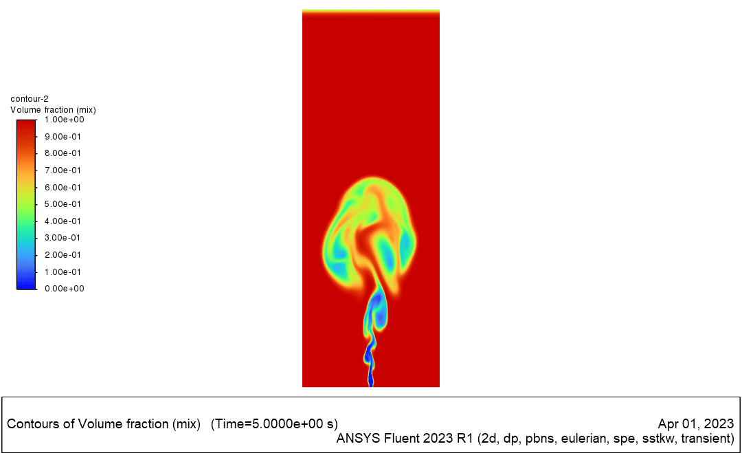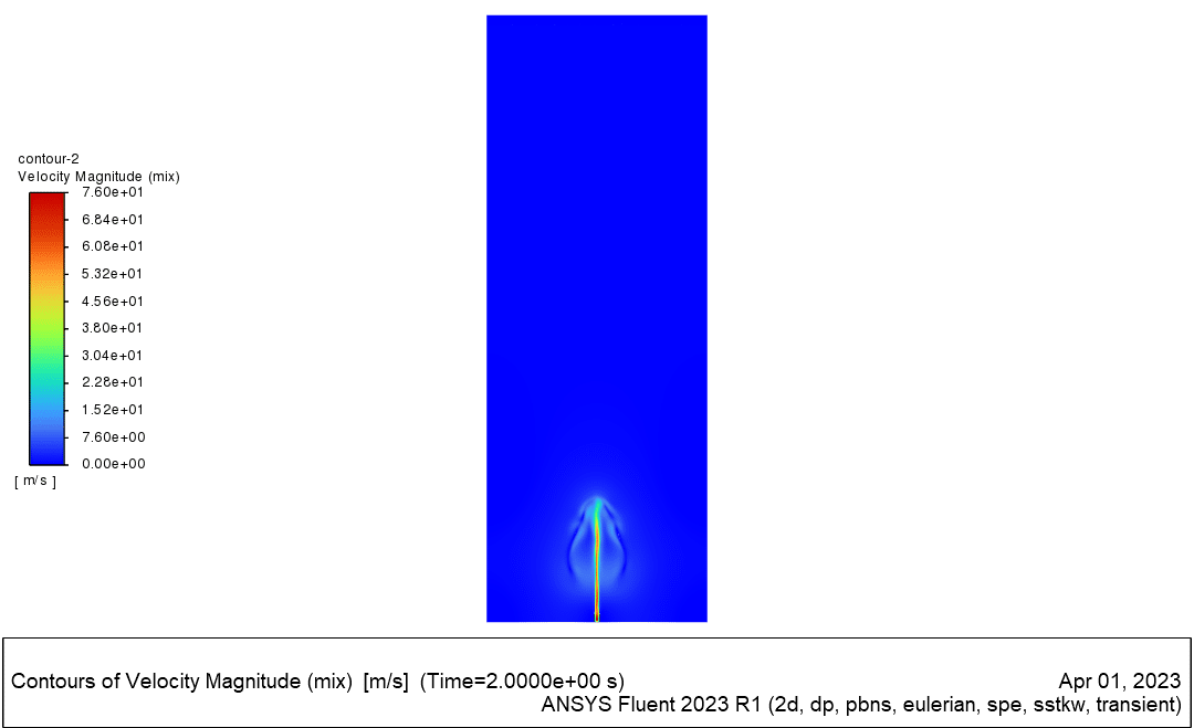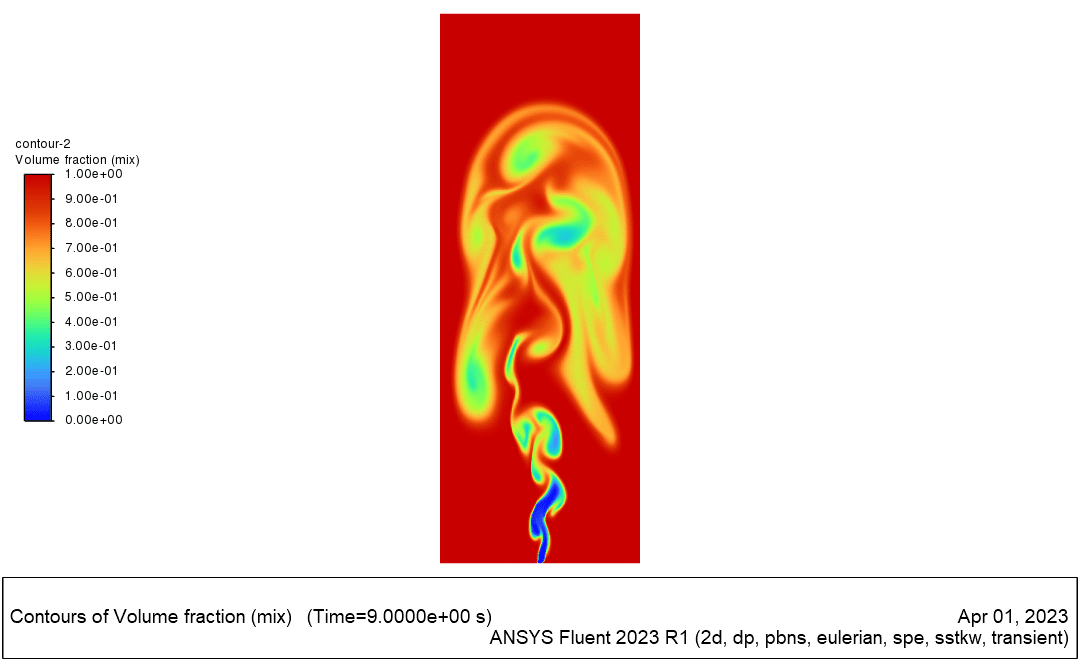 CO2 was injected from the bottom boundary, simulating seabed seepage or injection. The simulation was run for 9 seconds, with results analyzed at 2, 5, and 9 seconds to observe the plume’s evolution.