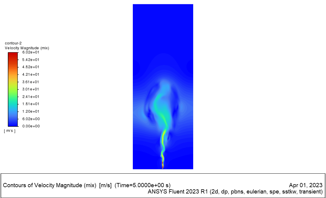A pressure-based, unsteady solver was employed to capture the time-dependent nature of the plume dynamics and the SST k-omega turbulence model was chosen to capture the turbulent nature of the flow.