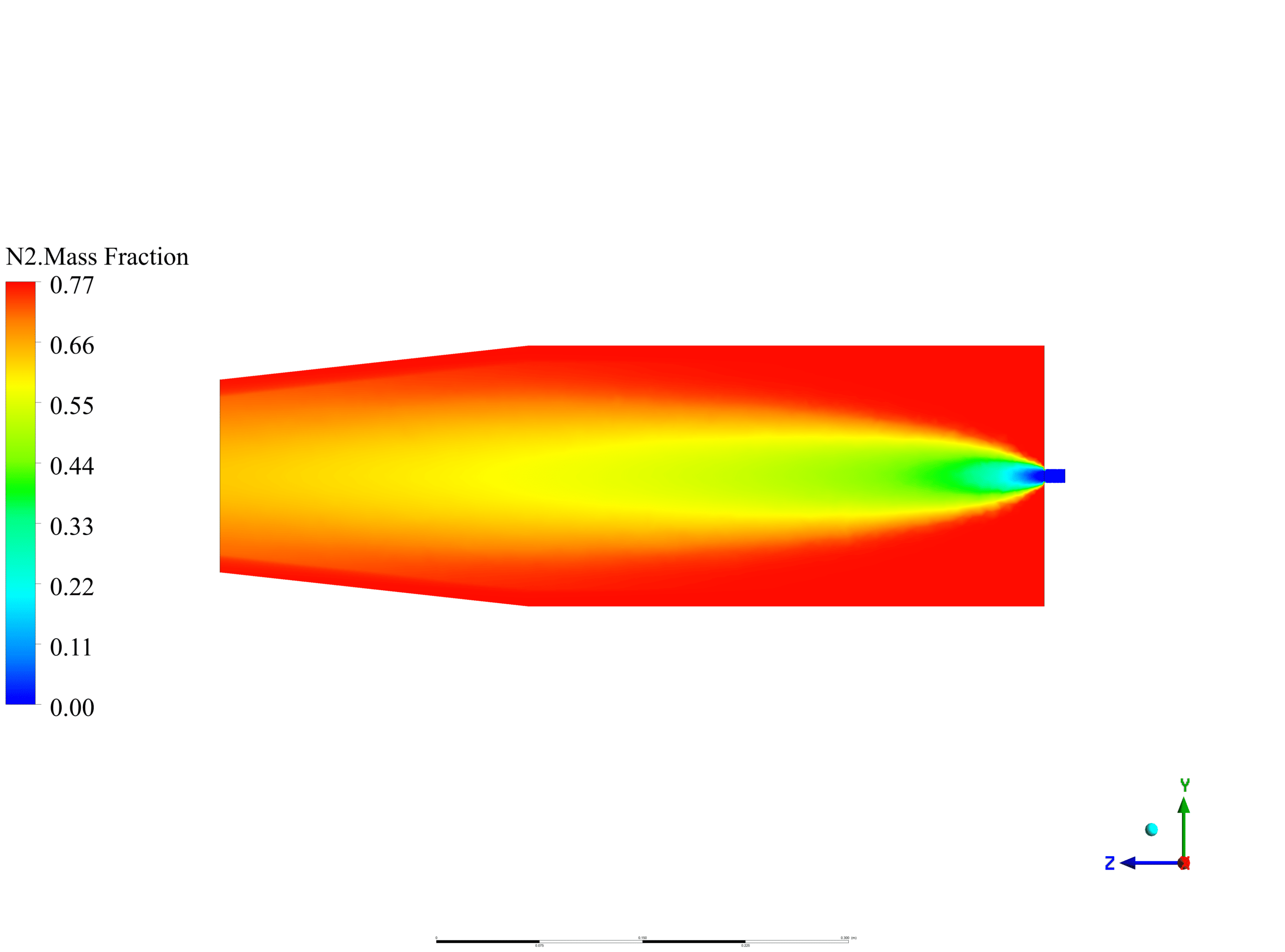 Finally, the mass fraction of all components (reactants and products) is shown in different contours.