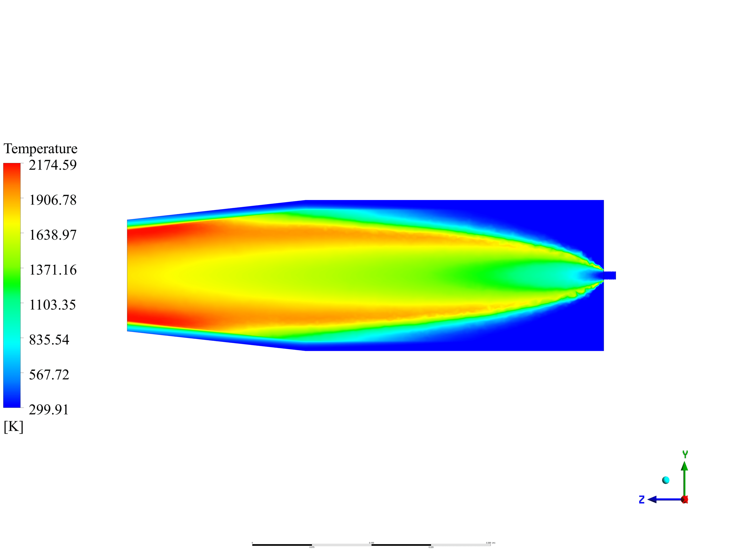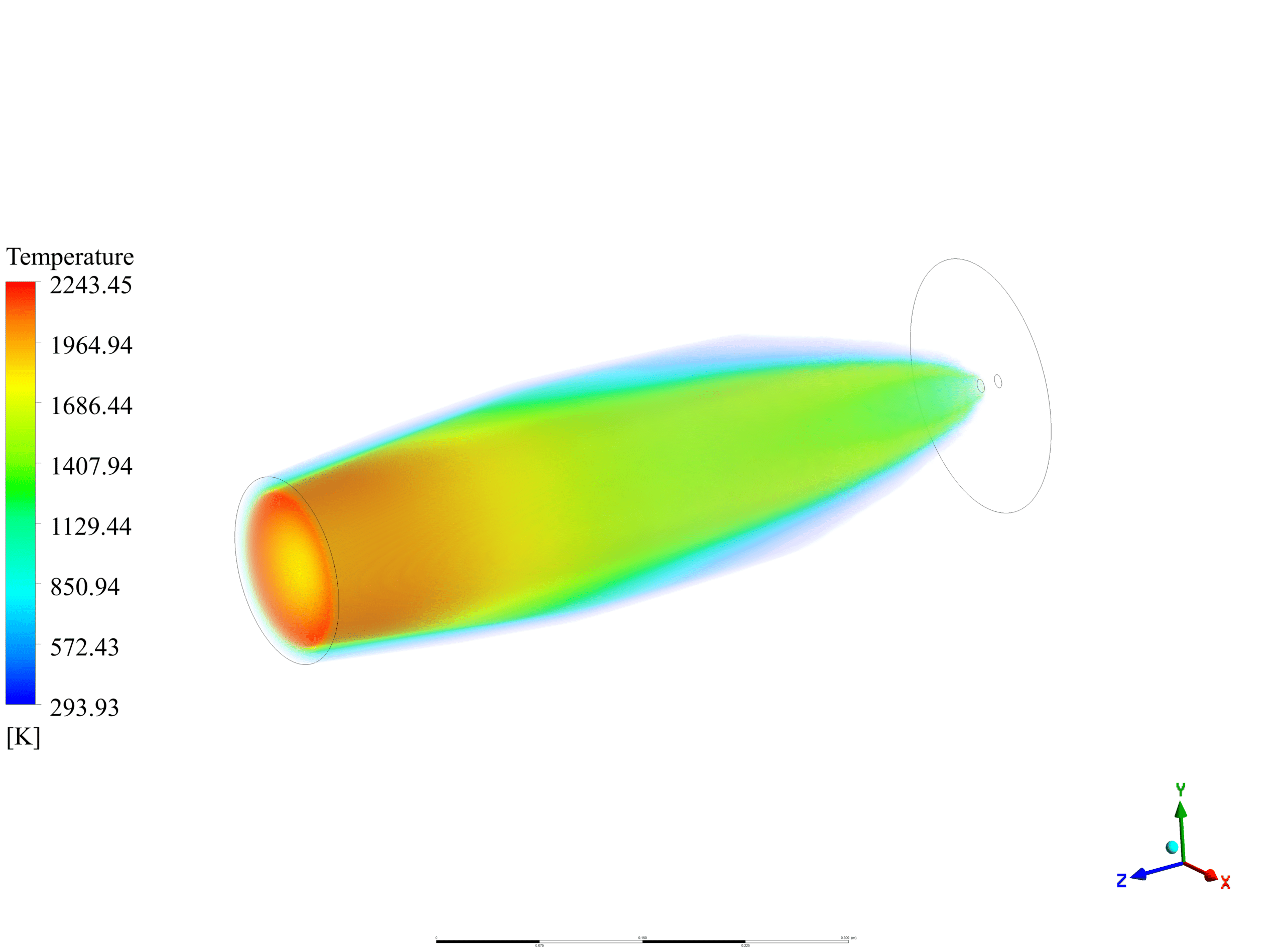 I’m extremely impressed with how well the ethane and air mix inside the chamber leading to efficient combustion. The output of the simulation shows how the combustion process impacts temperature and flow exit. It’s fascinating!