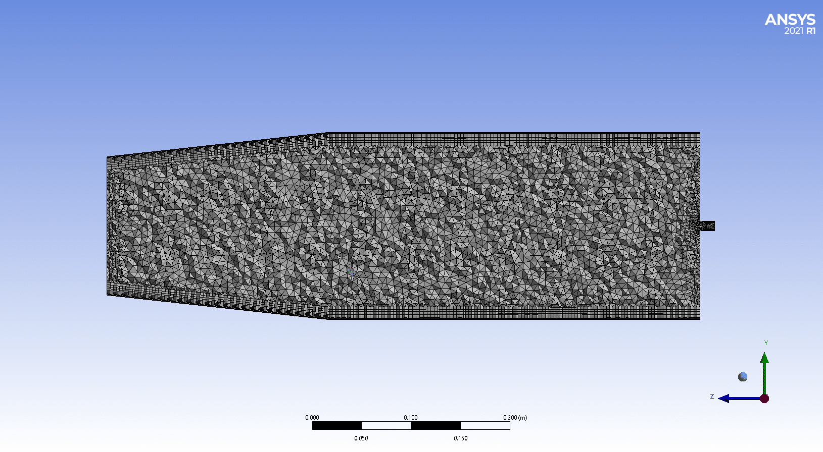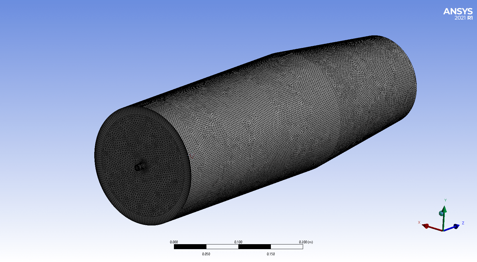The geometry of the simulation is generated inside the SpaceClaim software. Also, the meshing of this project has been done with ANSYS Meshing software. The whole element number is 1,147,748.