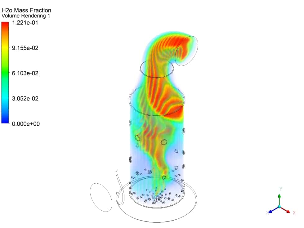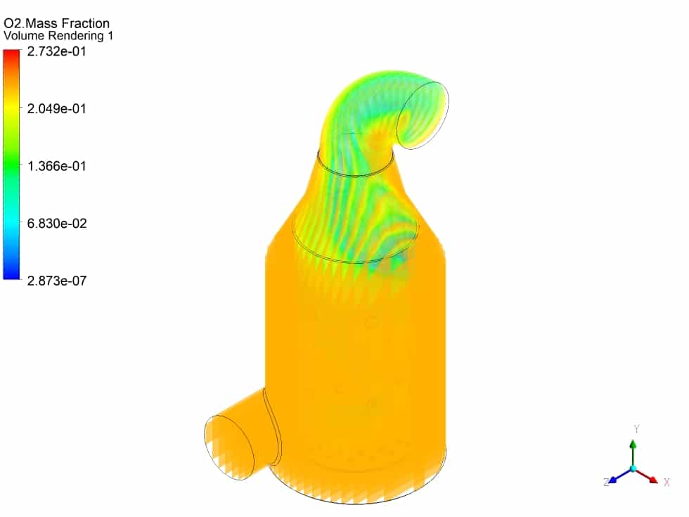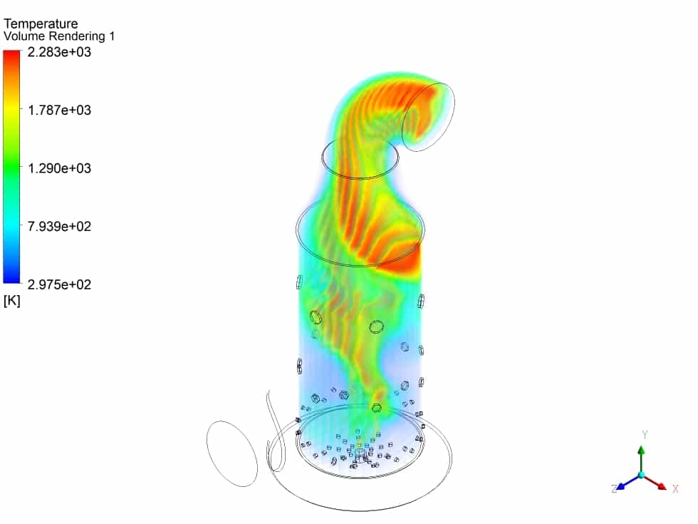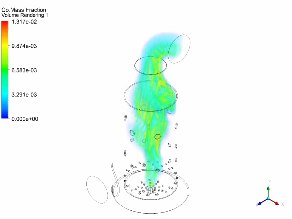 I’m fascinated by the level of detail in the combustion chamber simulation. The use of volume rendering and streamlines must provide a clear image of how these components interact inside the chamber. I commend the thorough approach and beautiful representation of complex combustion processes.