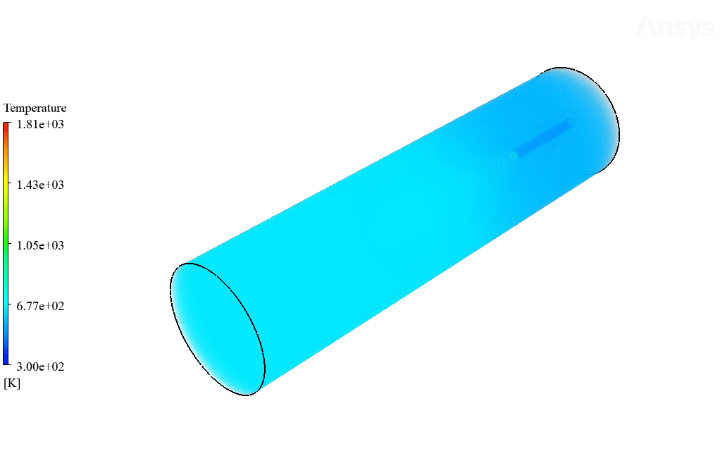 The present geometry is designed in a 3D model via Design Modeler. The computational zone of the interior is a horizontal cylindrical combustion chamber. Fuel enters the chamber through a narrow inner tube, and airflow enters the chamber from around this tube.