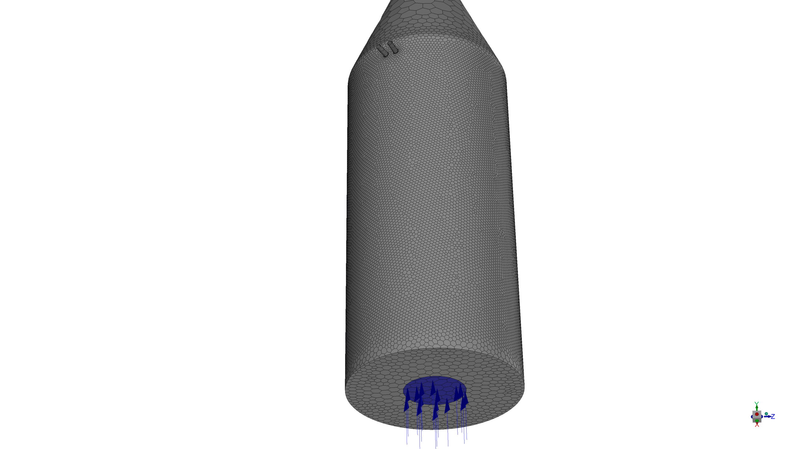 The geometry of the furnace was created in ANSYS Design Modeler, with a mesh of 1,039,748 polyhedra elements generated using ANSYS Meshing, providing sufficient resolution to capture the complex flow phenomena and chemical reactions.