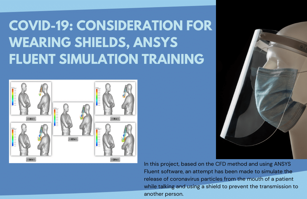 Project number 10 aimed to evaluate the effectiveness of using a shield or mask as a baa patient’s face patient against the spread of virus particles. For the present simulation, the discrete phase model (DPM) is used; Because this model allows us to study the particle’s mass discretely in a fluid space with a continuous phase. Due to the choice of this model, the virus particles secreted from the patient’s mouth are considered a discrete phase, and the open airflow in the computational area is considered a continuous phase.