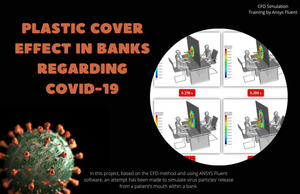 Project number 8 investigates the ability of coronavirus particles to spread inside the bank from a bank customer to a healthy bank employee. This simulation process is performed in two different modes. In the first model, no cover is located between the client and the bank employee to show the virus’s transmission power. In the second model, an attempt is made to make a thin plastic cover between them. The cover should be defined to demonstrate the process of preventing the transmission of virus particles as a barrier.