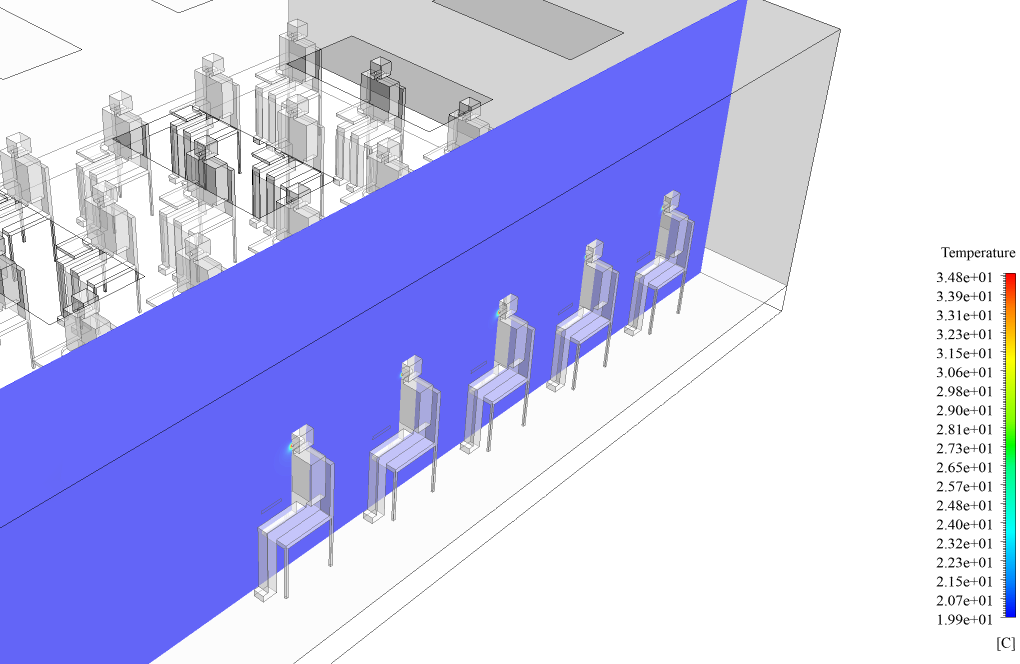 The results show that this ventilation system is inappropriate for the classroom and increases the risk of virus dispersion. This is because the virus particles spread completely in the classroom’s interior. In other words, the classroom ventilation system’s mechanism helps the virus survive in space.