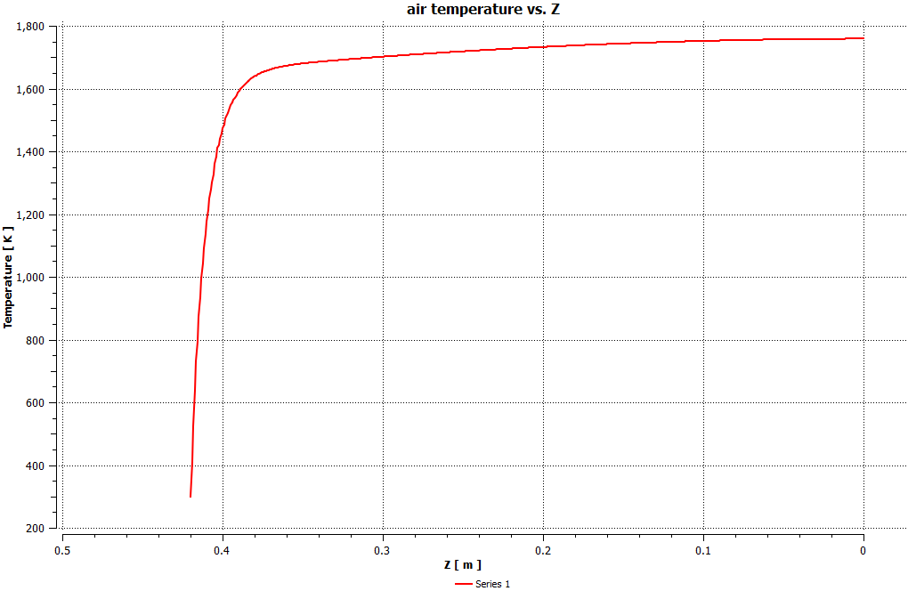 A solid aluminum cylinder is used as a heat source. Air enters and exits the domain with a temperature equal to 300 K and 1758 K, respectively.