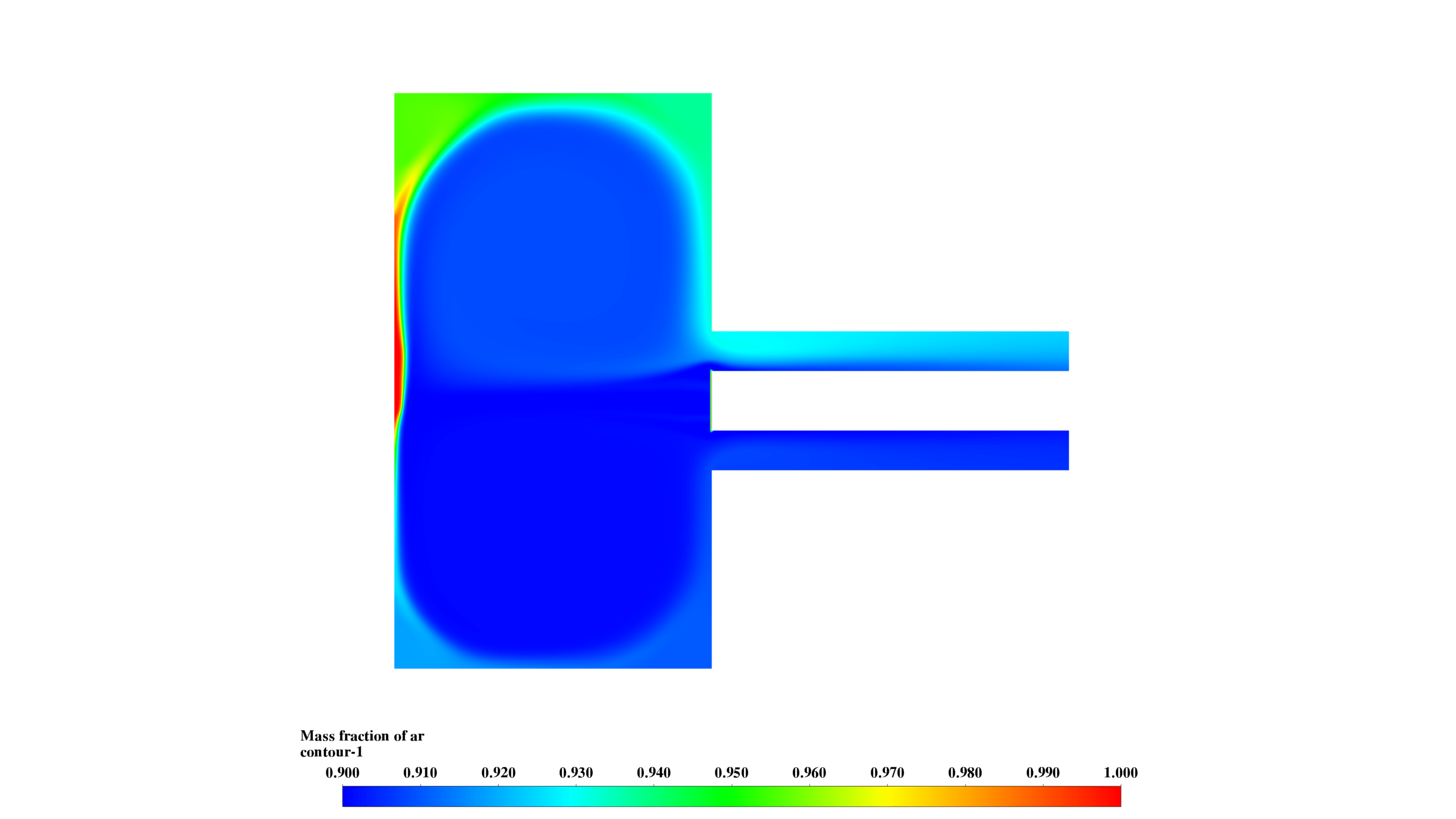 In the simulation, oxygen as a product of the MgO decomposition reaction is tracked via the species transport equations. It doesn’t further interact with magnesium particles; instead, it gets carried by the argon gas flow and exits the chamber through the pressure outlet.