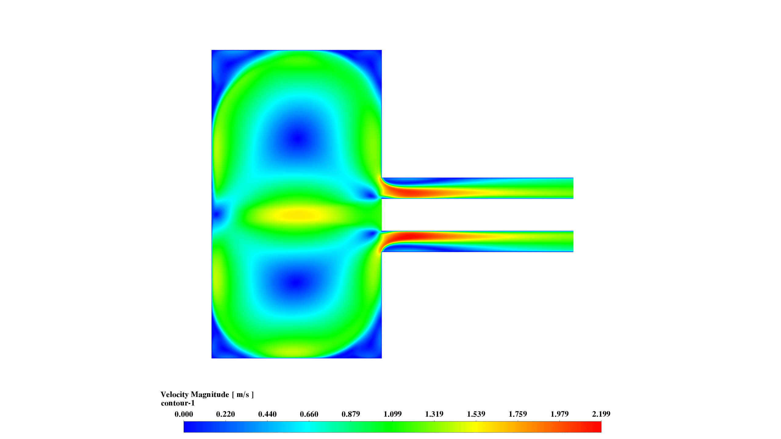 - Velocity: Magnitudes range from 0 to 2.199 m/s, with complex flow patterns and recirculation zones enhancing mixing and reaction rates.