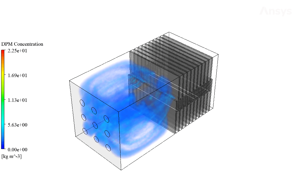 The results demonstration clearly showcased the dehumidification process, illustrating the air’s journey and how effectively it’s dehumidified by the system. Fantastic detail in showing particle residence times and interaction with the plates!