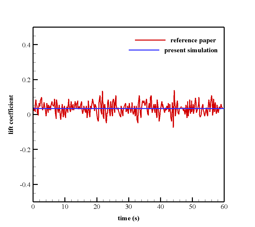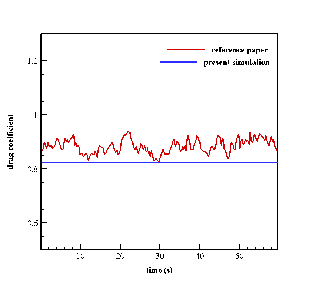 In presence of the dimples, the flow dynamics over the cylinder surface change due to the introduction of surface disturbances, which can modify the separation points of the boundary layer. This generally affects the pressure distribution and can either increase or decrease the resulting drag and lift. Specifically, the dimpled cylinder in this simulation showed how it altered aerodynamic forces, and by comparison with the referenced paper, we could validate the behavior of the coefficients reaching a stable value, indicative of the dimples’ impact on the flow. However, for the exact numbers and analysis of drag and lift coefficient changes, you would refer to the simulation results and the comparisons made, which would detail out the quantitative impacts of the dimples compared to a smooth cylinder scenario.
