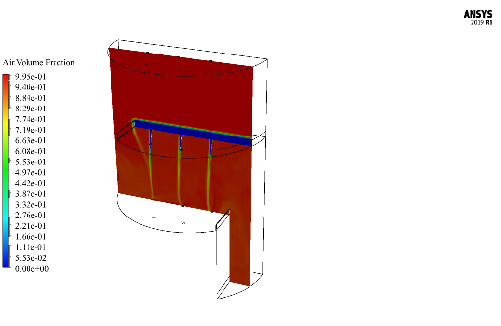 Thank you for reaching out with your question! The primary goals in this distillation column tray simulation are focused on studying the flow behaviors and interaction between the liquid (water) and gas (air) phases at the tray location, without accounting for heat transfer and evaporation processes. Expected qualitative outcomes include the understanding of separation efficiency and the effectiveness of the tray design in achieving proper contact between the phases. We can anticipate visualizing the distribution and mixing patterns of the two phases, gas flow uniformity through the vents, and any potential areas where design modifications could enhance the column’s performance.