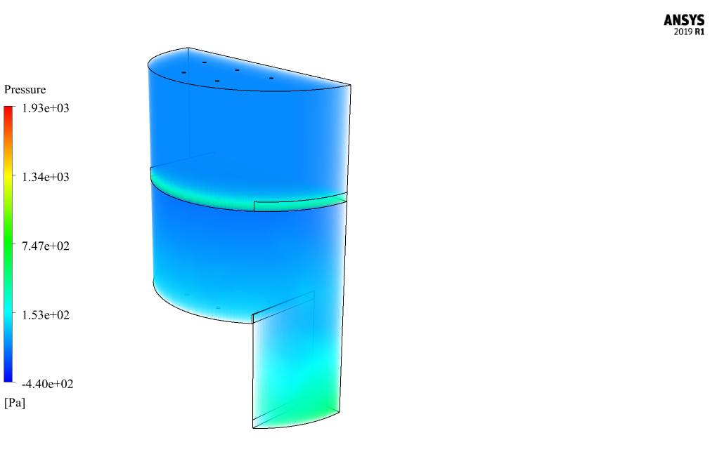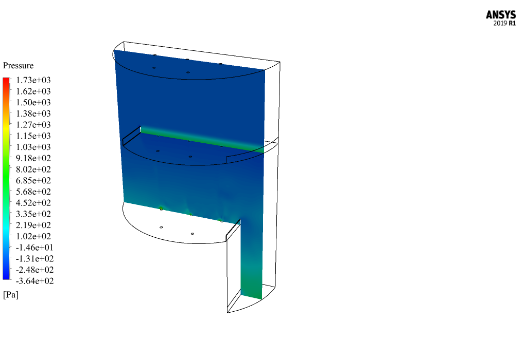 Pressure greatly affects the efficiency and operation of distillation processes. In our simulation setup within ANSYS Fluent, the air and water flows are considered at atmospheric pressure. The gravity effect and the interaction between the two phases at the tray easily offset this chosen approach, and it facilitates the separation process based on density differences. This mimics common industrial distillation operation conditions. For more precision in different scenarios where pressure varies significantly, the set-up can be adjusted in the boundary conditions to simulate pressure impacts accordingly.