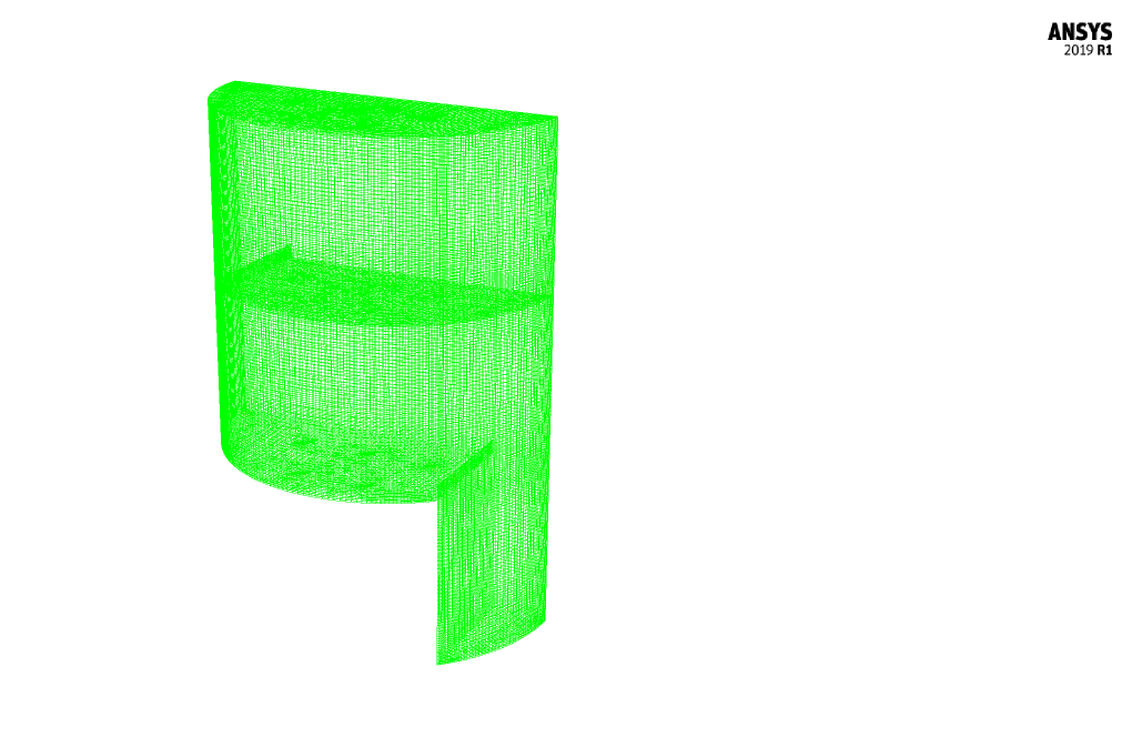 The meshing of the model has been done using ANSYS Meshing software and the mesh type is unstructured. The element number is 866590. The following figure shows the mesh.