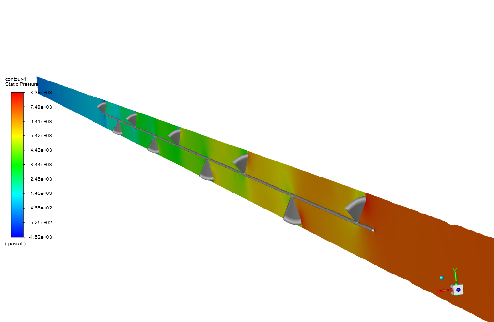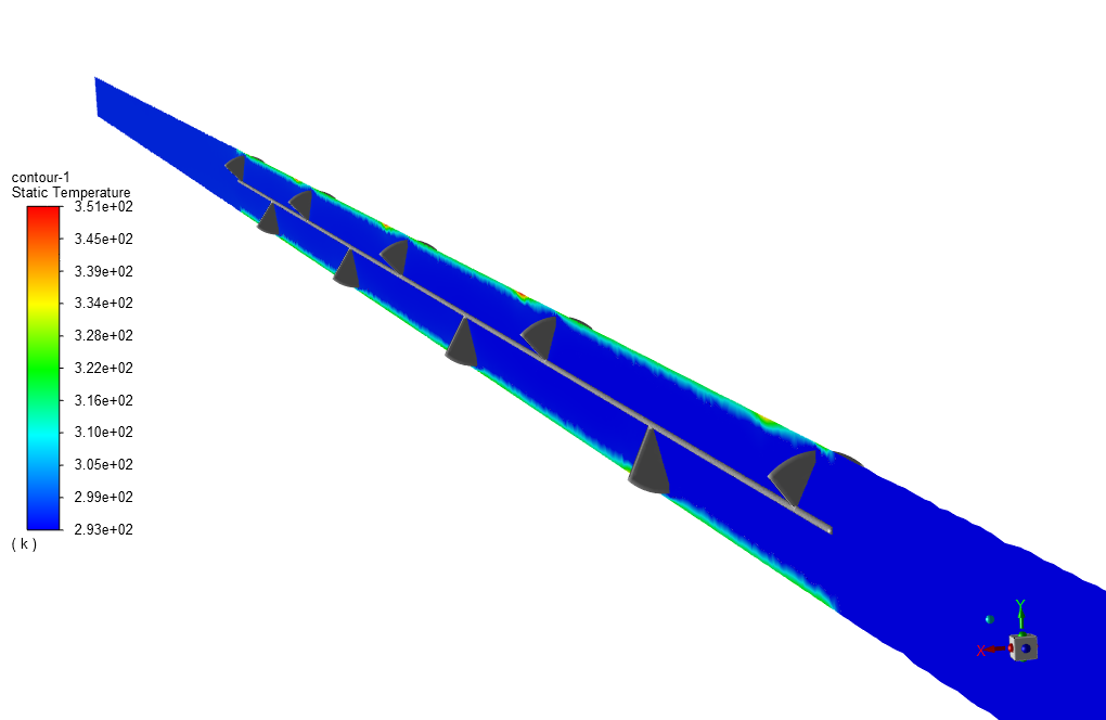 After the CFD simulation process, contours of pressure, velocity, temperature, etc., are obtained and presented.