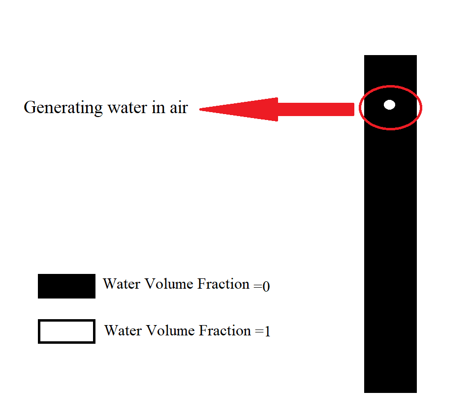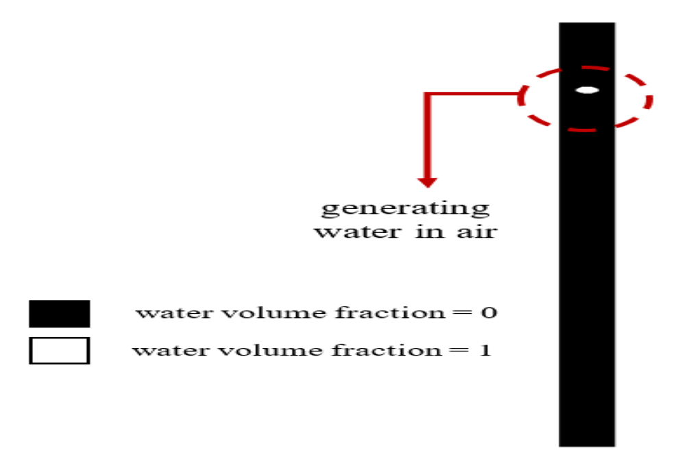 To define the existence of a drop and move it along the Y-direction in the air, we must define the shape of the drop in the appropriate coordinates in the air using the adapt region and select the sphere, and then mark it so that the software Identify the sphere that contains our definition sphere within the main geometry of the model. After initializing the model with a zero volume fraction for water (ie, there is only air in the model), using the patch option, the volume fraction for the water phase in the defined spherical region is equivalent to one. This means that there is air within the whole model space and there is only a defined spherical area of the water droplet. The initial droplet formation is in the middle of a square section at a distance of 5 mm in the x and z directions and 25 mm above the upper surface in the Y-direction and the defined radius for the drop is 0.002 m.