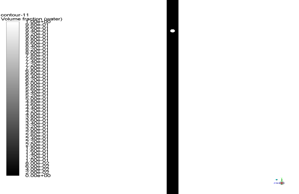 The iso-surface value of 0.5 for the volume fraction is used to determine the interface between the air and water. In VOF models, the volume fraction ranges from 0 to 1, where 0 represents the primary phase (air) and 1 represents the secondary phase (water). The 0.5 value represents the exact mid-point where both phases are equally present, effectively marking the boundary between them. When simulating two-phase flows, this value is often used to track and distinguish the interface between the two fluids as the droplet falls due to gravity.