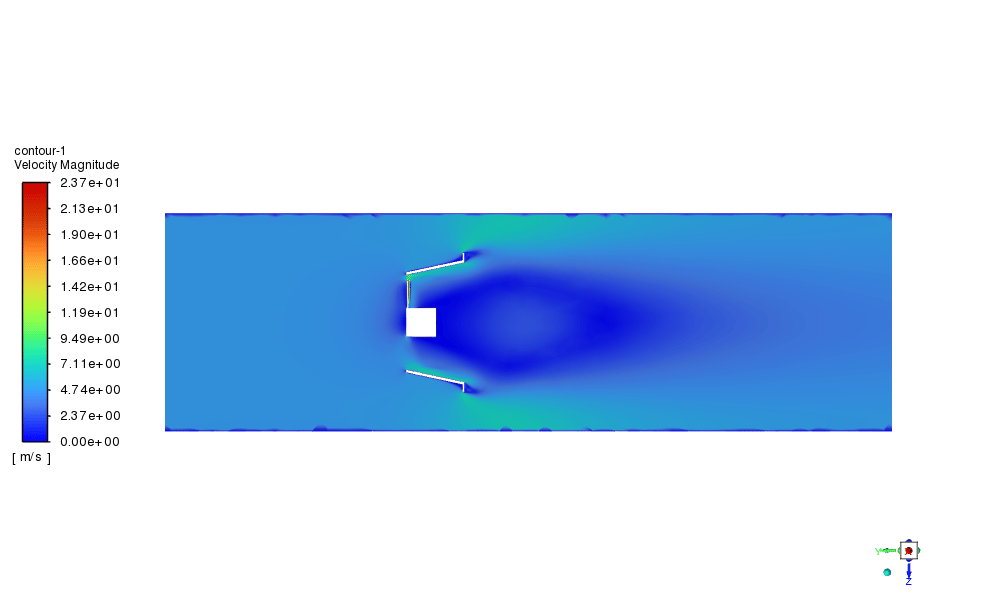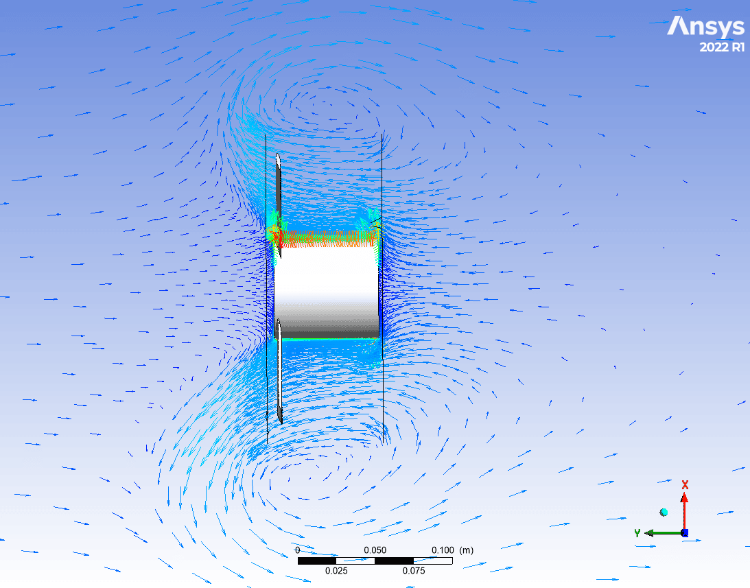 After the simulation process, 2D & 3D contours are extracted, as shown below. To assess properly, the torque generated by the turbine blade around the y-axis is reported by ANSYS Fluent. The results show a significant increase in torque which equals 63%! or in other words, the performance of wind turbines. To conclude, in tip-speed-ratio of 2.5 is a great effect but should be observed for different working conditions.