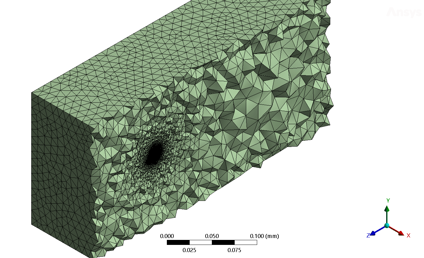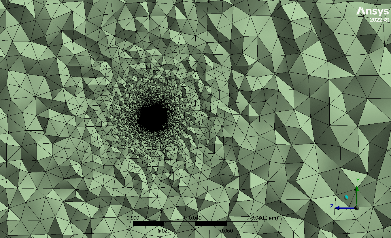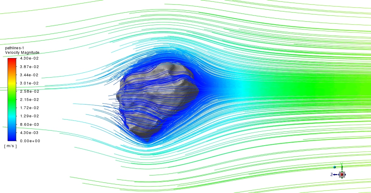 The geometry of the dust shape was created in Ansys Design Modeller & Spaceclaim. An object on a micrometre scale is located in a rectangular cuboid domain (Fig.1). Also, the mesh grid is carried out using Ansys Meshing software. Due to the complexity of the Dust’s geometry, the element size and growth rate, and inflation of the grid about the object are of the essence. As a result, about 3.52 million elements were generated in each case, as can be seen in Figure 2.