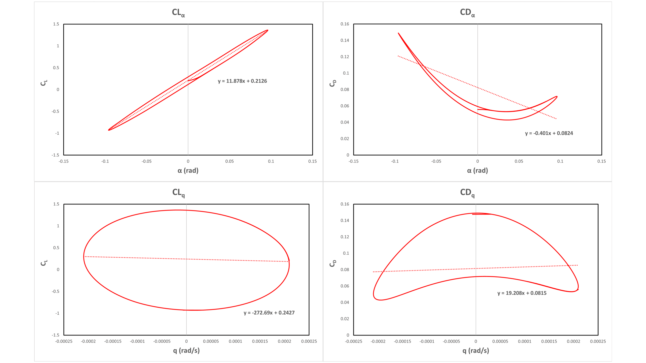 - The corresponding graphs are drawn and the total number of 24 dynamic derivatives coefficients are correctly extracted.