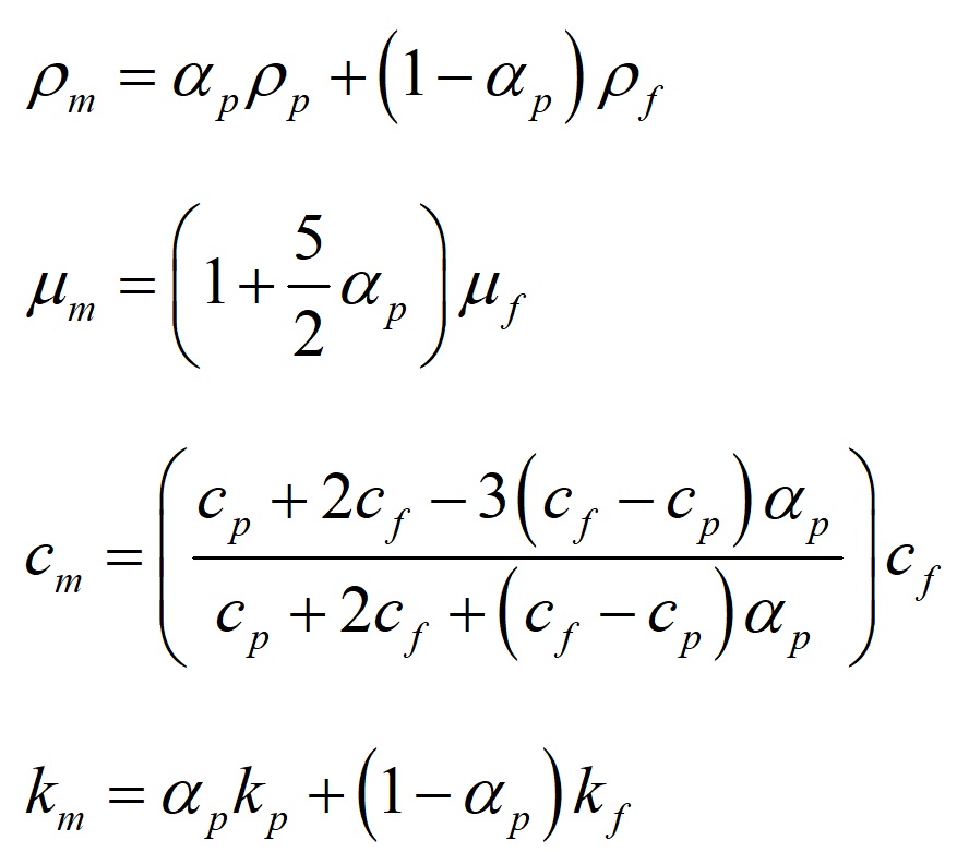 where are density, viscosity, specific heat, and thermal conductivity coefficient of nano-fluid and volume fraction of nanoparticles in fluid.