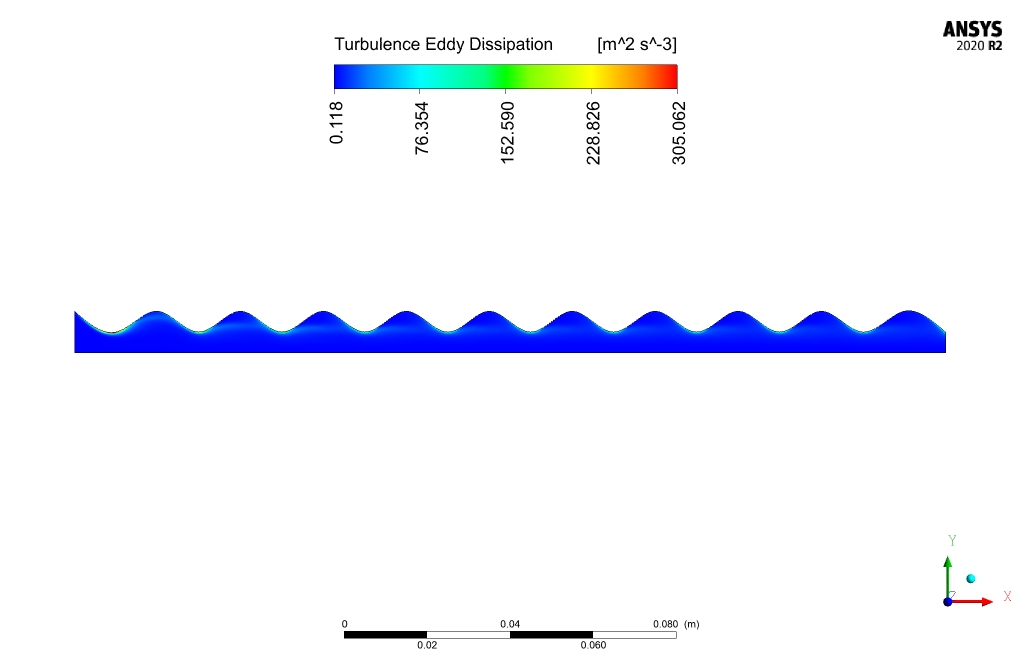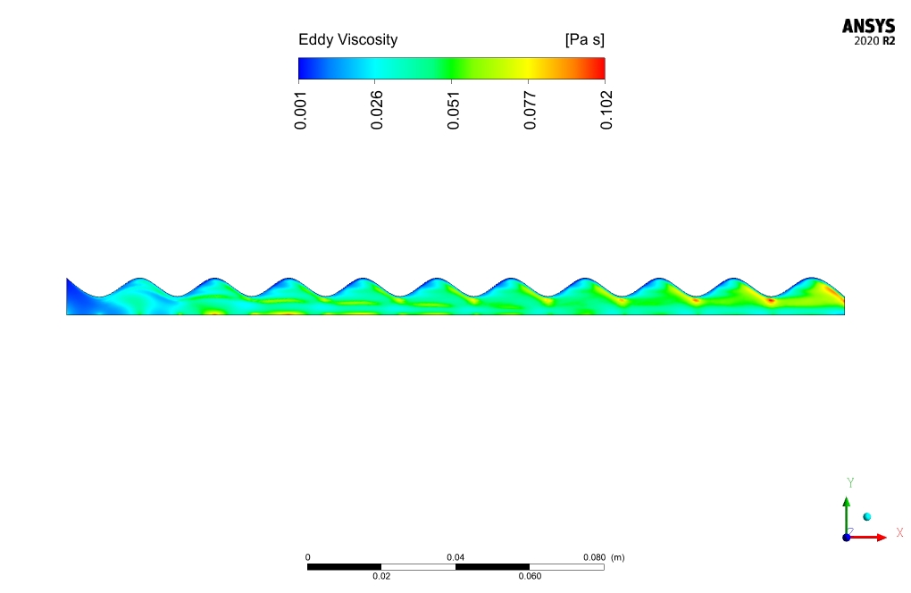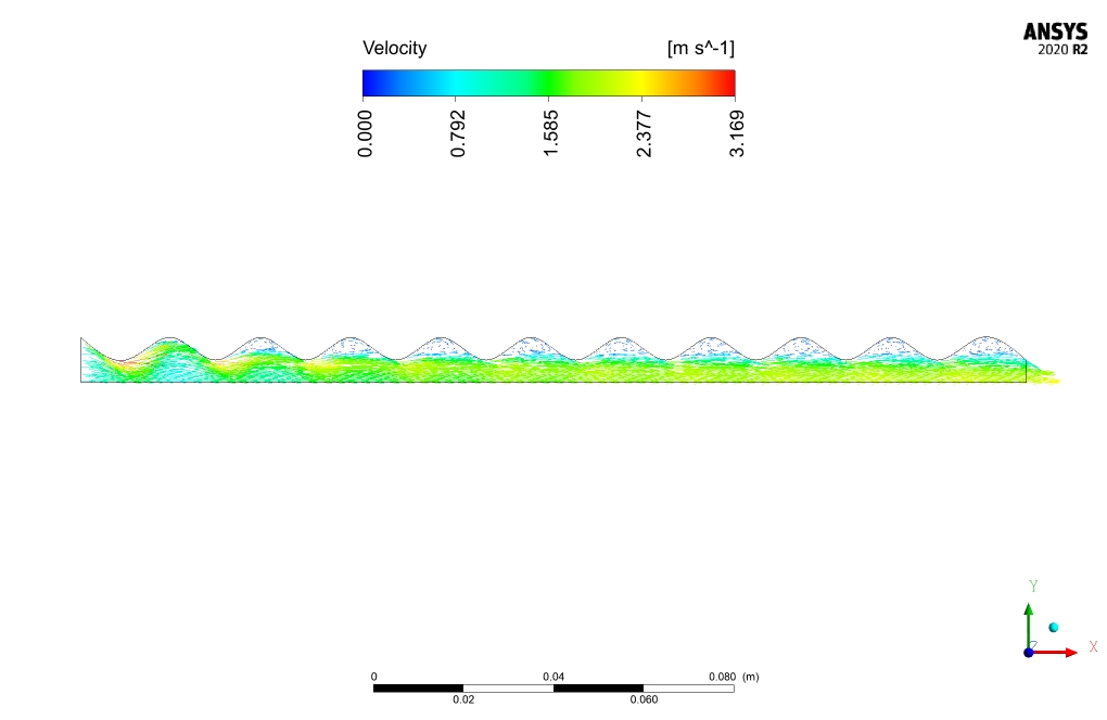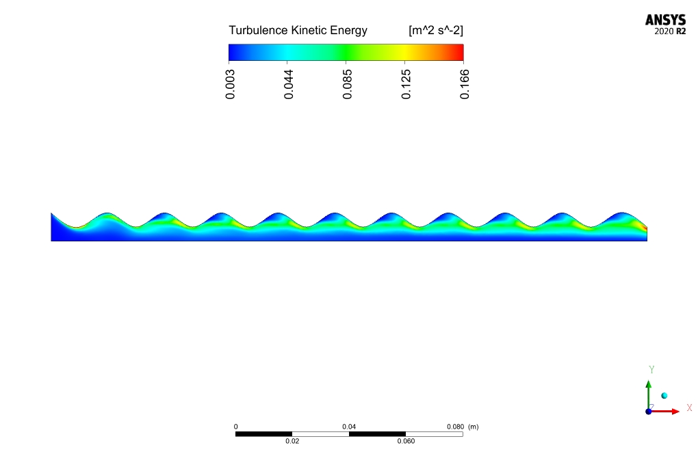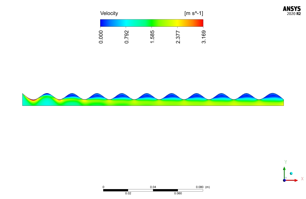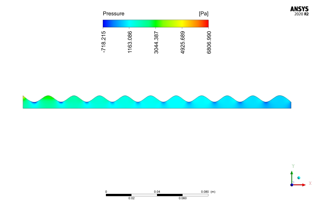 The geometry of the fluid domain is designed in the Design modeler and the computational grid is generated using Ansys Meshing. The mesh type is unstructured and the element number is 17640.