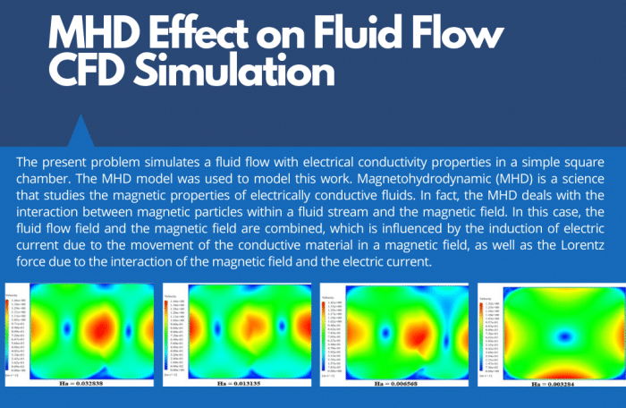 The 10th practical exercise simulates a fluid flow with electrical conductivity properties in a simple square chamber by ANSYS Fluent software. The MHD model was used to model this project. Magnetohydrodynamics (MHD) is a science that studies the magnetic properties of electrically conductive fluids. In fact, the MHD deals with the interaction between magnetic particles within a fluid stream and the magnetic field.