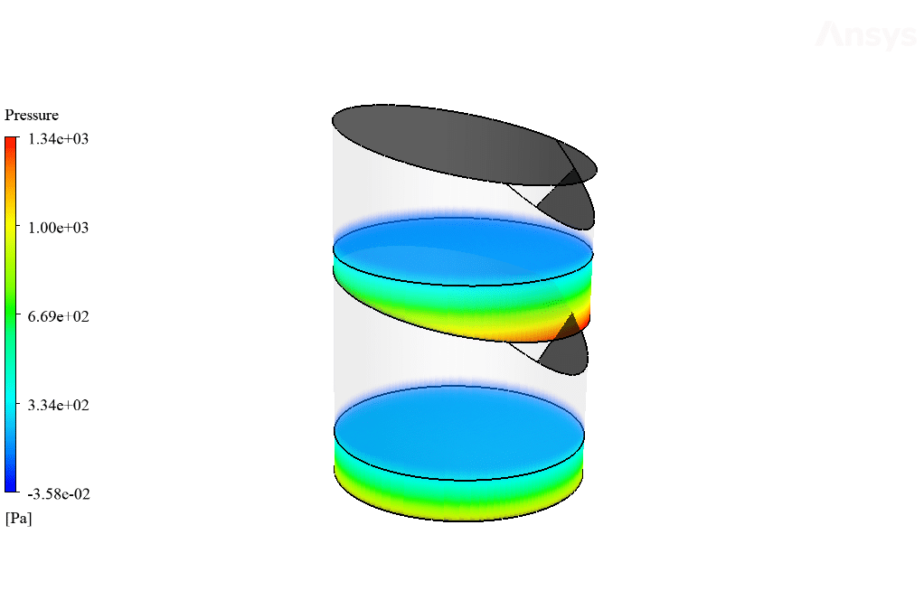 As observed in the obtained results and contours, stratified pressure distribution inside the system trays is clearly shown. This is due to the hydrostatic pressure of the water column inside the trays.