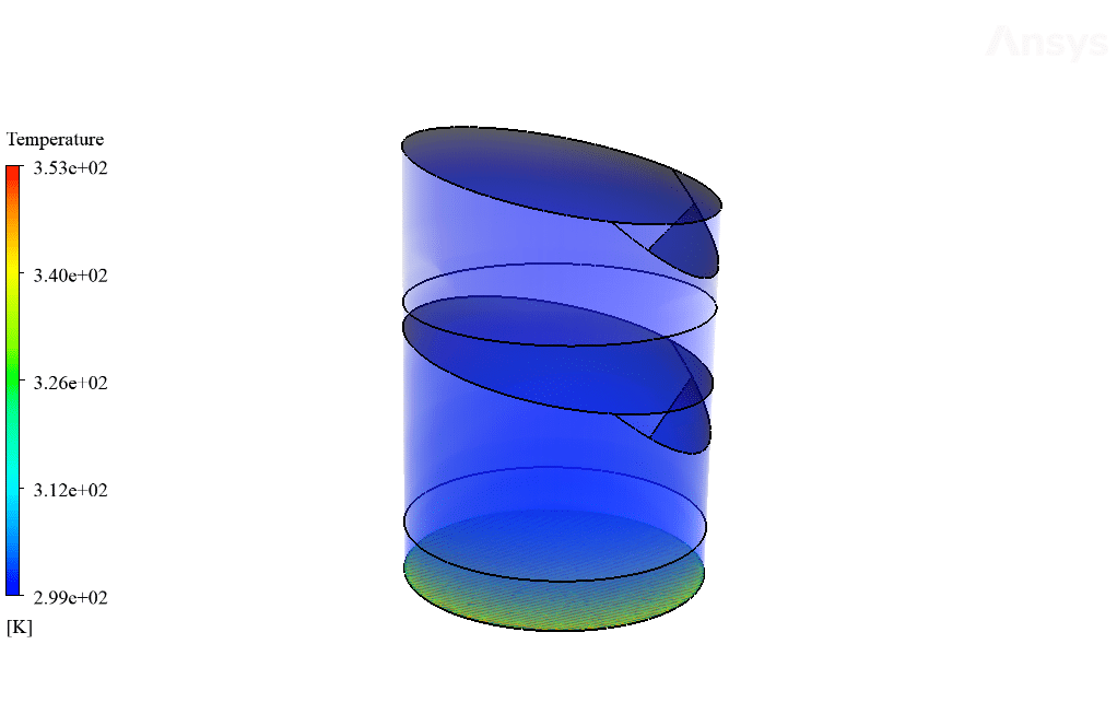 Also, as observed in the temperature contour, the bottom surface has an increased temperature which causes the water liquid’s molecular motion path to increase. This increase in molecular motion will lead to the increased kinetic energy of water molecules, which would, in turn, cause the surface evaporation process to occur faster.