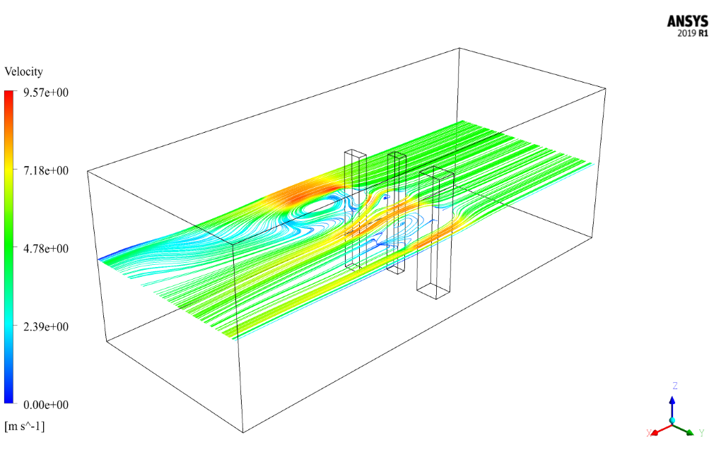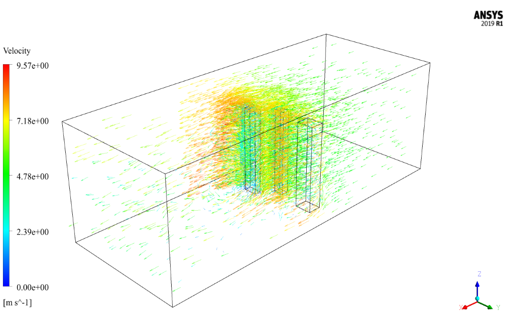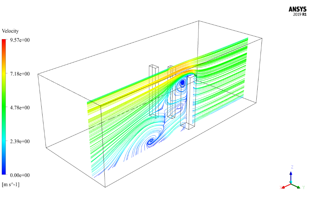 The problem simulates the wind flow through several buildings in a specific computational domain by ANSYS Fluent software. We perform this CFD project and investigate it by CFD analysis.