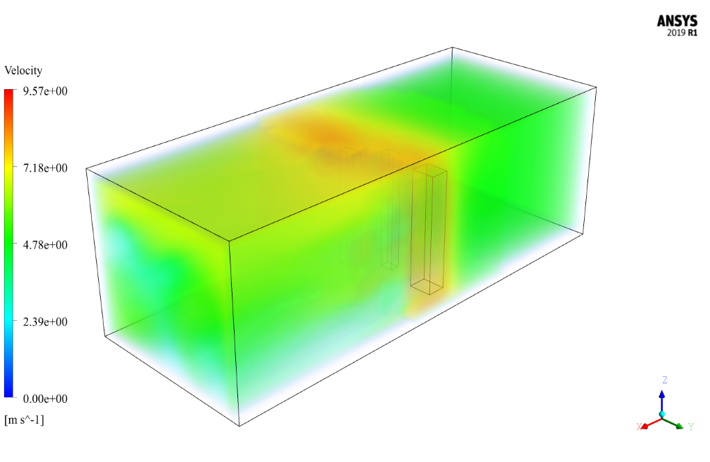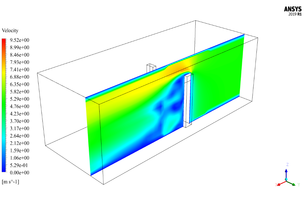 In this particular simulation, a wind speed of 5 m/s was chosen to represent a specific scenario. However, the setup is highly customizable, and users can adjust the wind speed based on different urban conditions or standards to simulate a range of scenarios and assess the impact on structural designs.