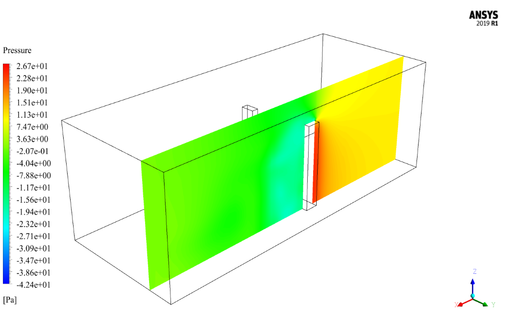 This simulation is transient, and the whole simulation process is done in one second with a 0.01 s time step size. The present simulation is unsteady in terms of time because the purpose of the problem is to examine the effect of wind flow on structures over time. The Pressure-Based solver has been performed.