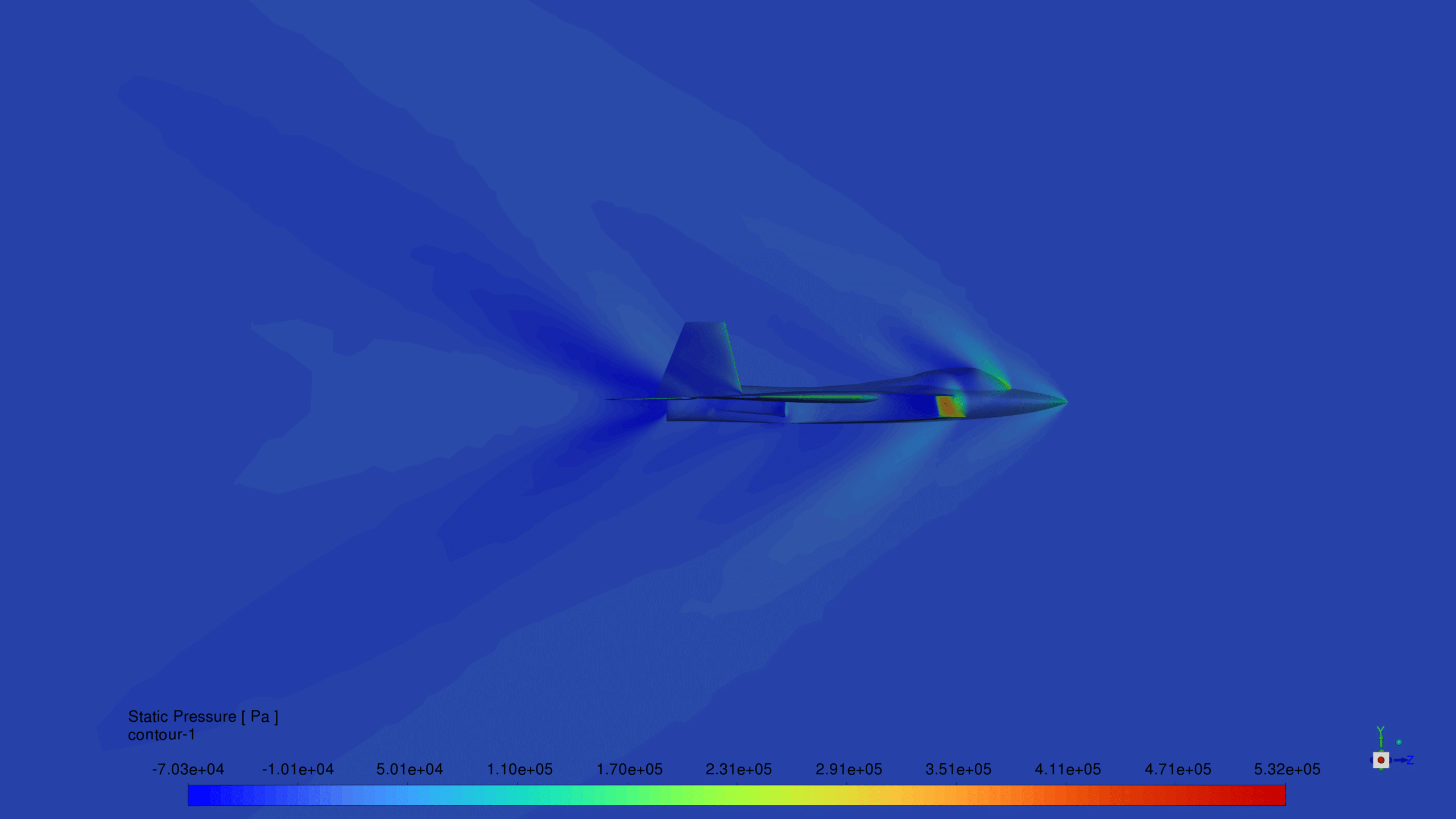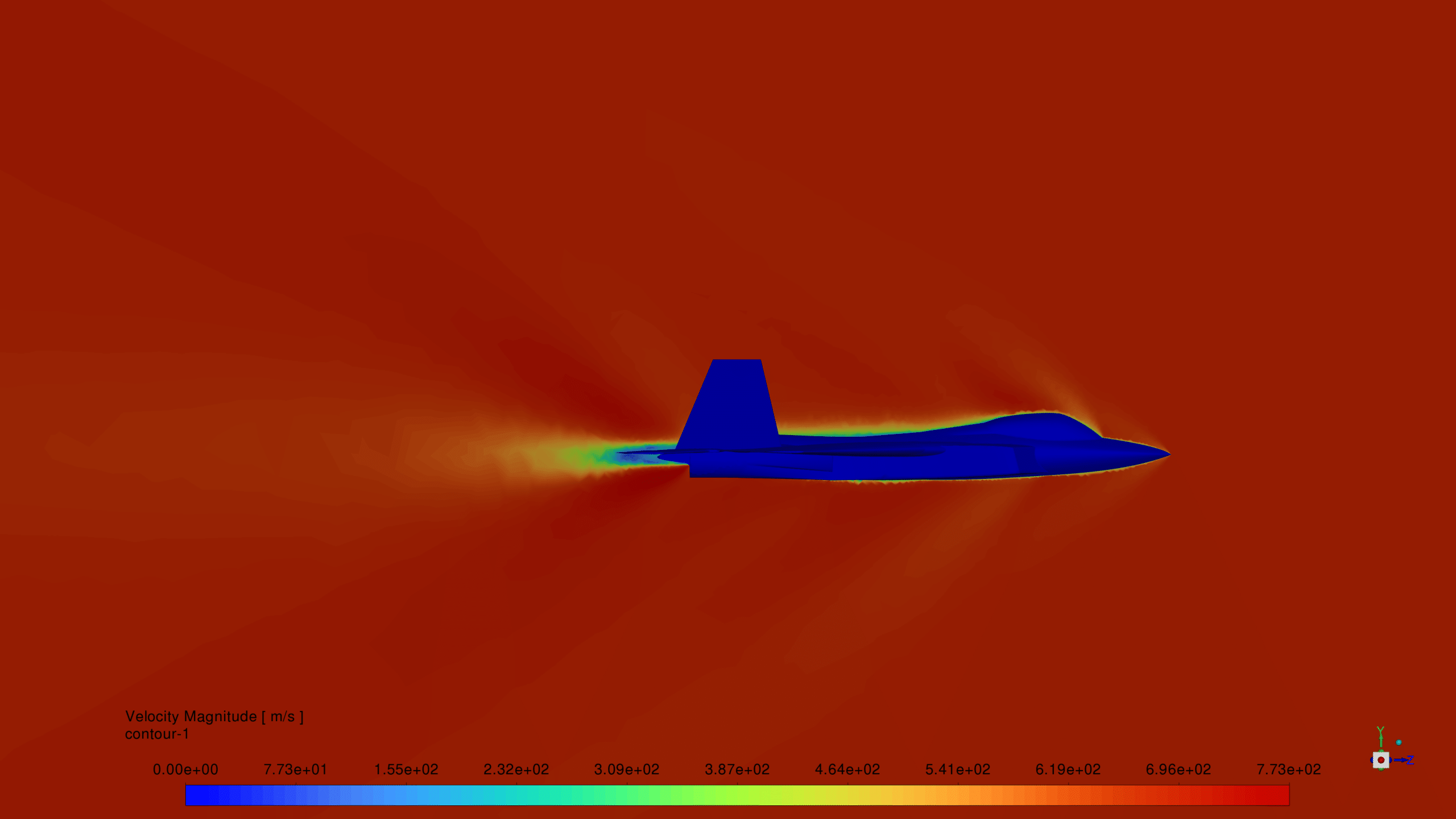We modeled the geometry of the F-22 Raptor using SpaceClaim software. Then we meshed the model with Fluent Meshing software. The model mesh is un-structured polyhedral, and the number of cells is equal to 4,989,000.