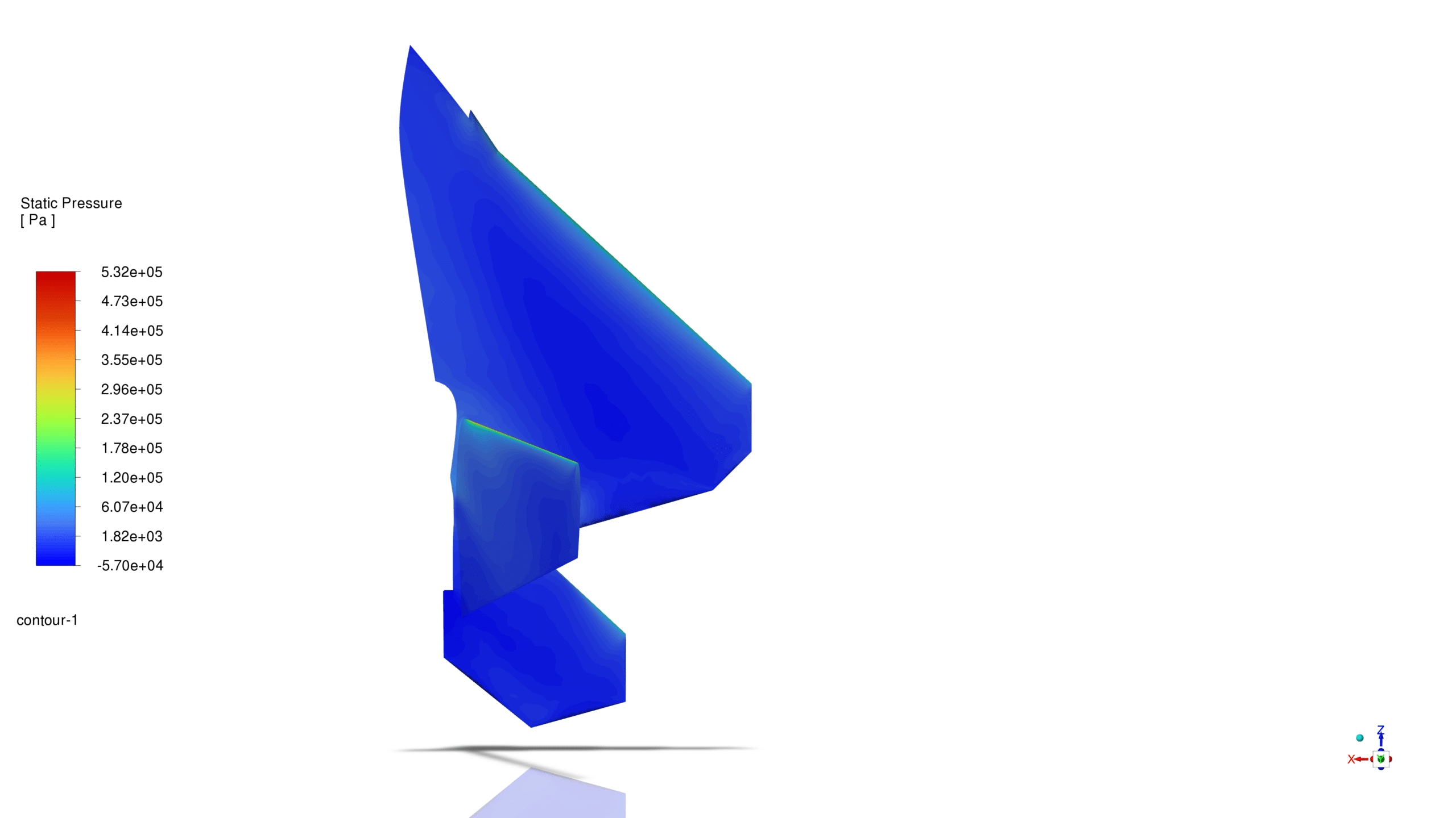 Optimized F-22 Raptor Wing Geometry As observed in the contour plot of the z-component of the wings post-optimization, the winglet exhibits a slight increase in size. This geometric modification is consistent with the objective of enhancing lift generation. The enlarged winglet effectively reduces wingtip vortices, thereby improving the overall aerodynamic efficiency of the F22 wing structure.
