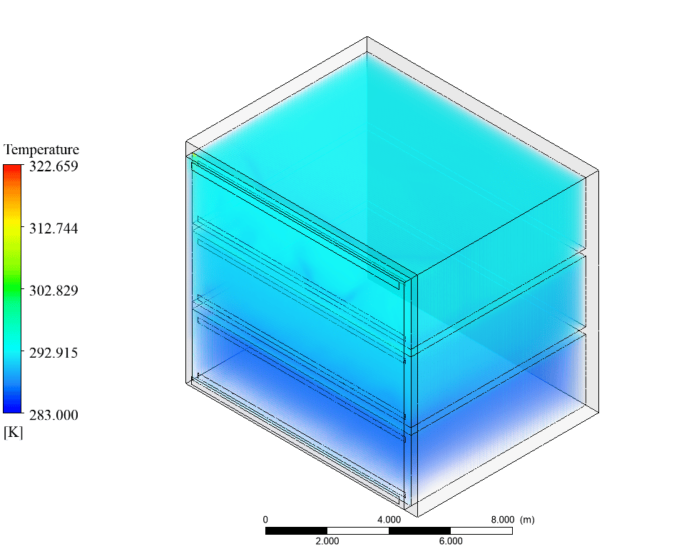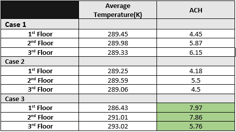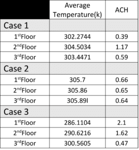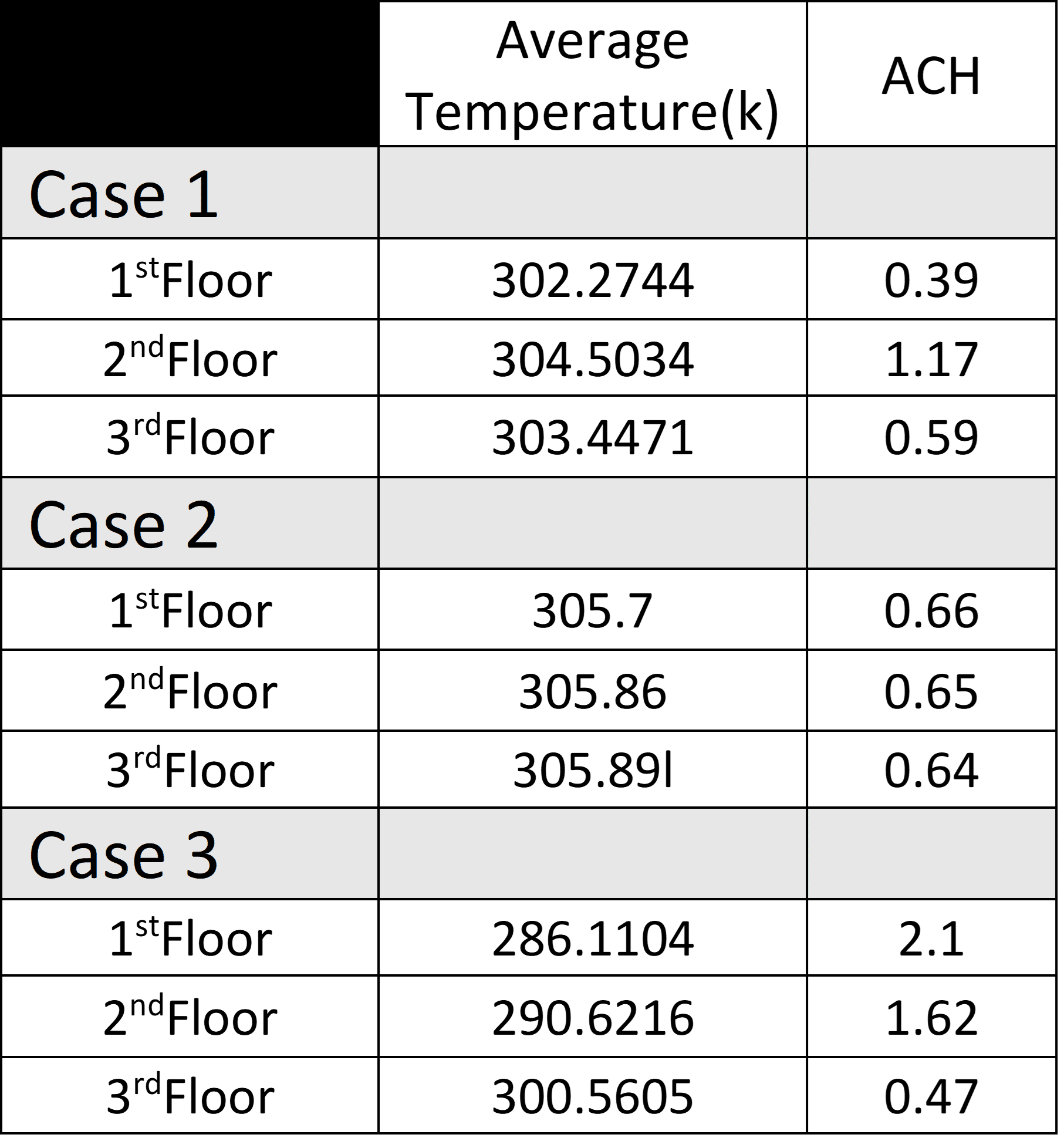 Hence, from the aspect of energy, we need to determine the building’s average temperature, which is 303.4K, 305.8K, and 293.4K for cases 1 to 3, respectively.