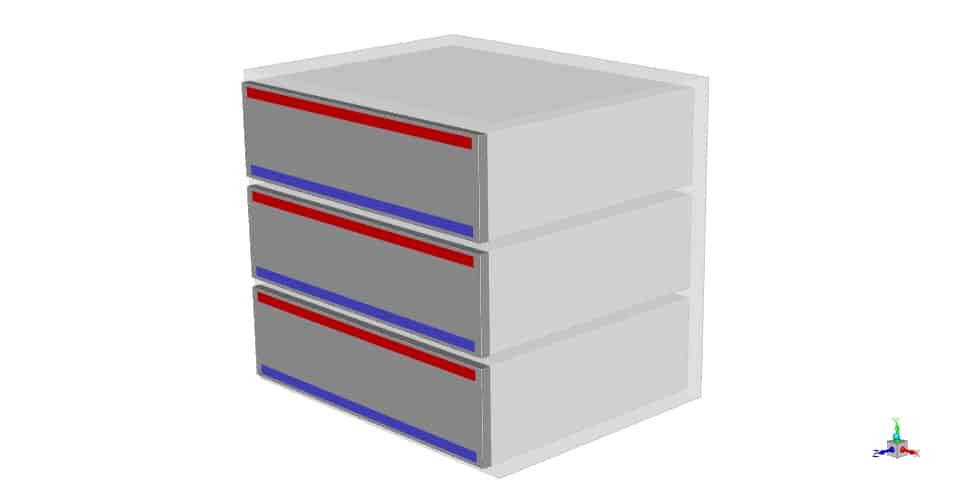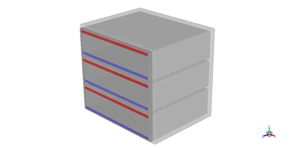 In case 2, the inlet and outlet vents are installed on a modified façade. In this case, the façade is established from three separate parts, each for a different floor and not in contact with each other.