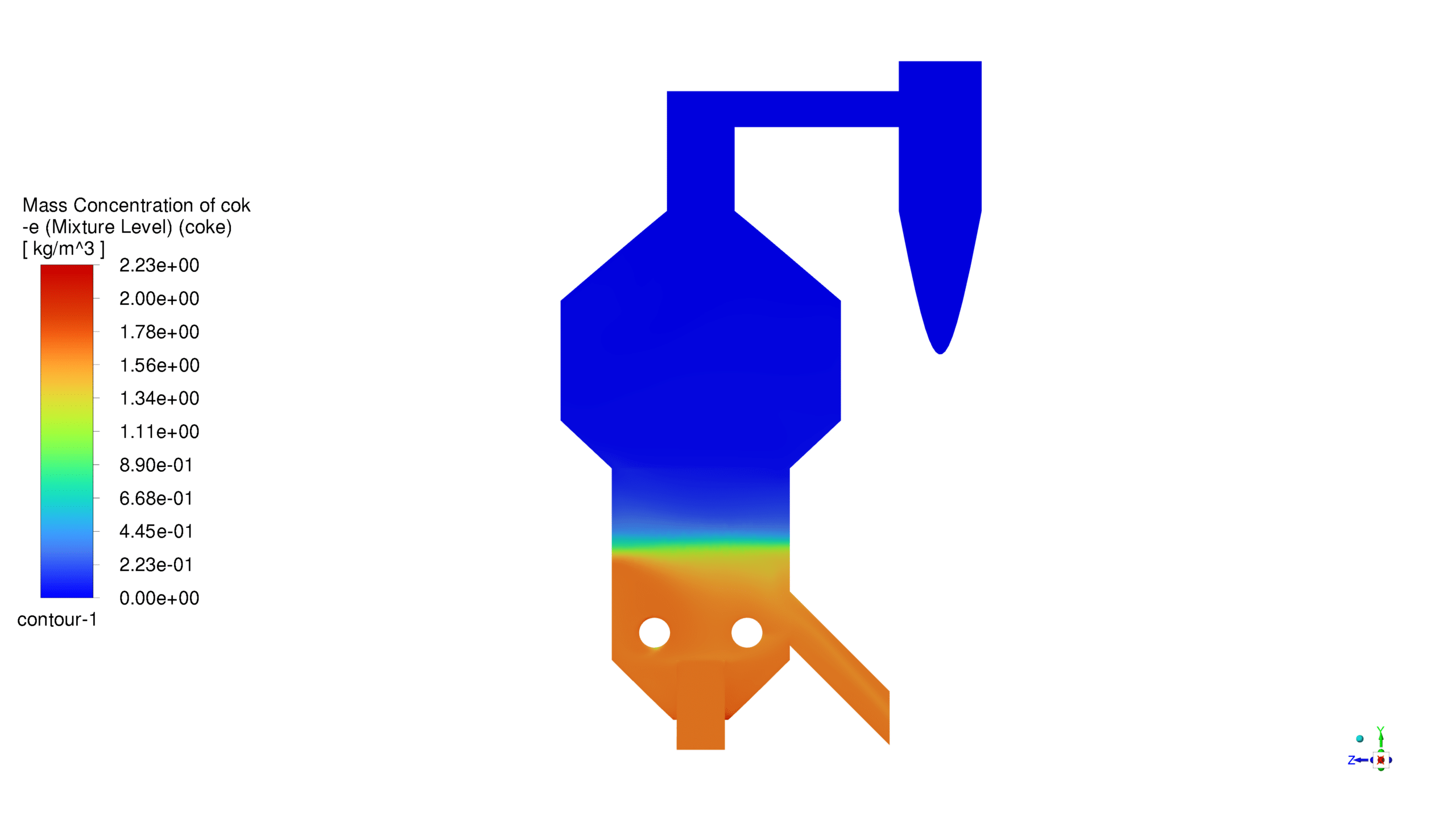 The solid phase was treated using the Eulerian granular flow model, which considers granular flow characteristics and particle-particle interactions.