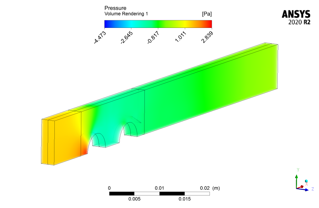 I’m very impressed with how effectively the finned tube design increases the surface area for heat transfer. Was there significant pressure drop observed across the heat exchanger in the simulation?