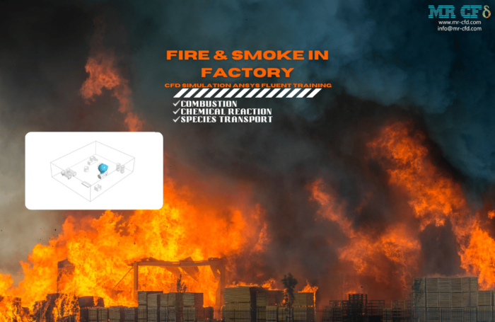 - The present problem simulates the combustion reaction (Fire & Smoke) of a pressure tank in a factory via ANSYS Fluent software.