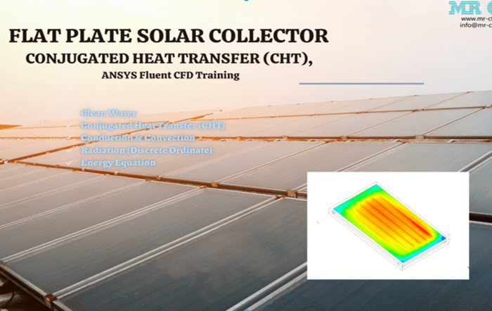 - The current CFD Analysis simulates the Flat Plate Solar Collector Conjugated Heat Transfer via ANSYS Fluent software.