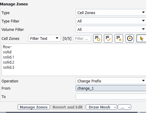 - Manage Zones renames, merges, and reclassifies cell and face zones so that boundary and region definitions become cleaner and easier to use in the solver setup.
