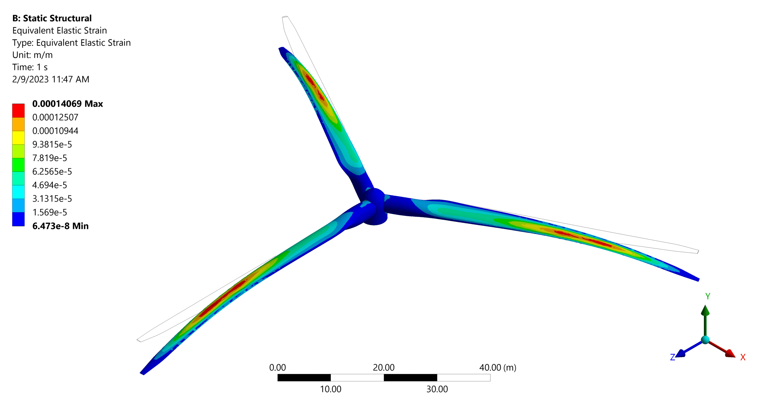 The FSI analysis for the HAWT turbine sounds fascinating! I was especially impressed by how the total deformation was quantified—0.2 meters at the blade tips is really informative. The simultaneous assessment of bending stress and strain provided a comprehensive understanding of the turbine’s structural integrity under operational conditions.
